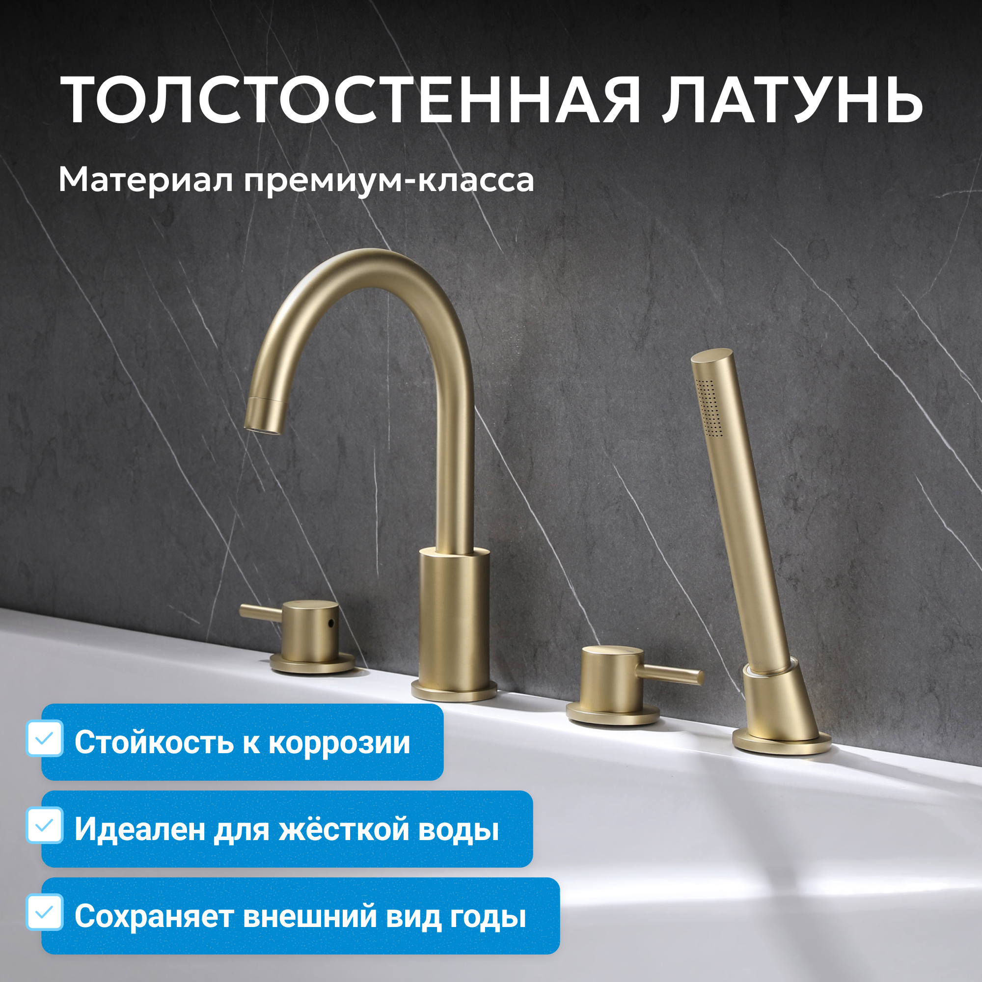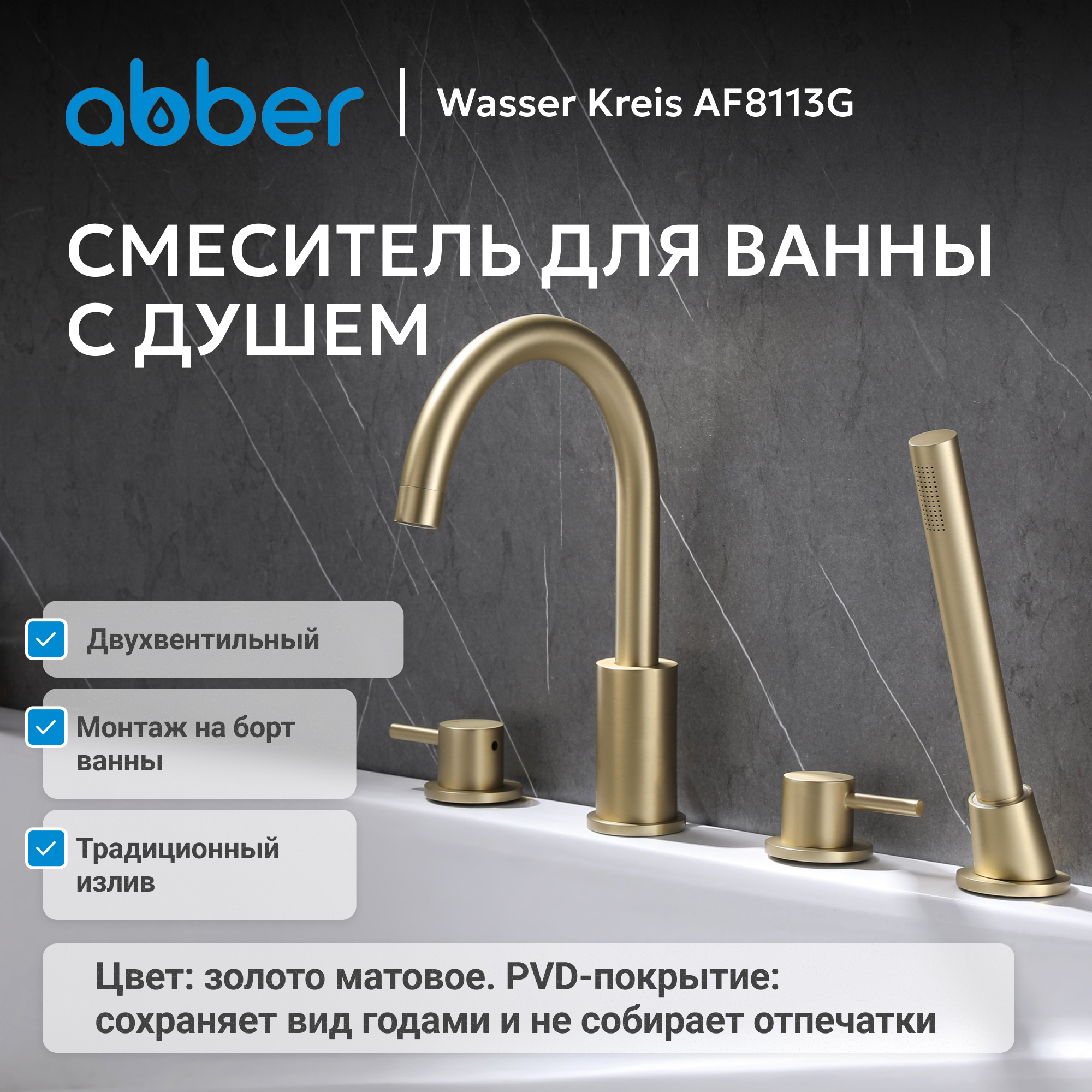 Смеситель ABBER Wasser Kreis AF8113G на борт ванны, золото матовое