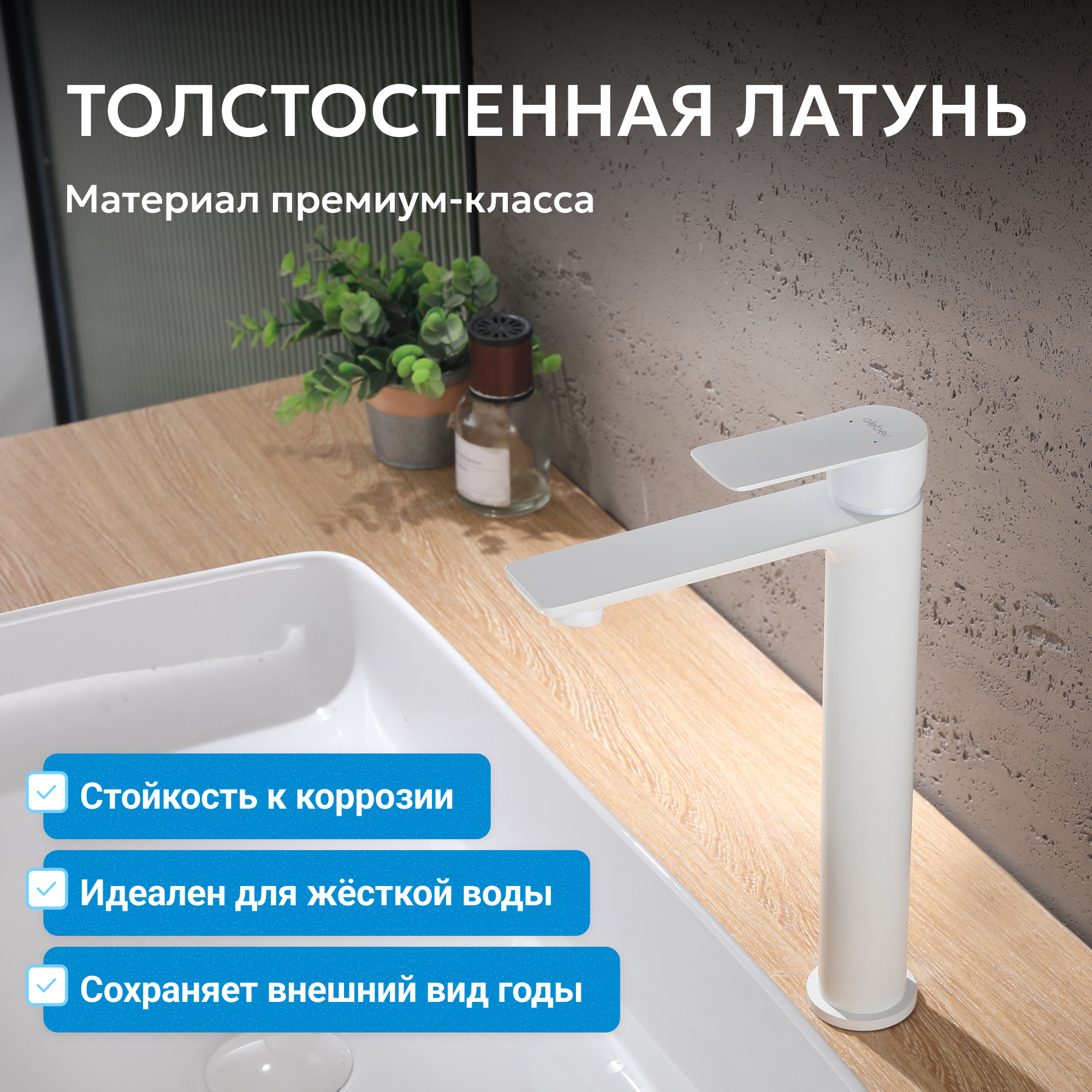 Корпус всех смесителей ABBER изготавливается из латуни техникой цельной отливки при атмосферном давлении, что обеспечивает высокую прочность изделия и устойчивость к перепадам давления.
