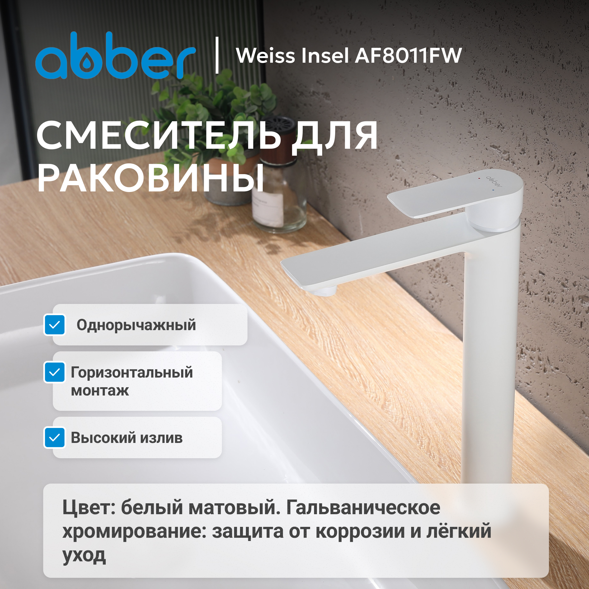 Смеситель ABBER Weiss Insel AF8011FW для раковины, белый матовый