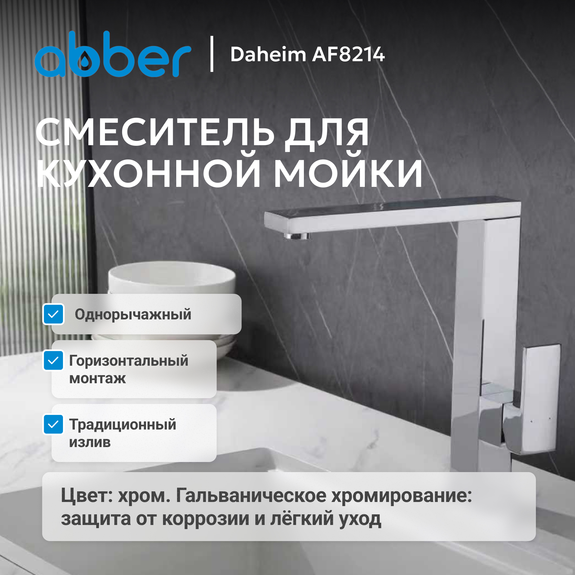Смеситель ABBER Daheim AF8214 для кухни, хром