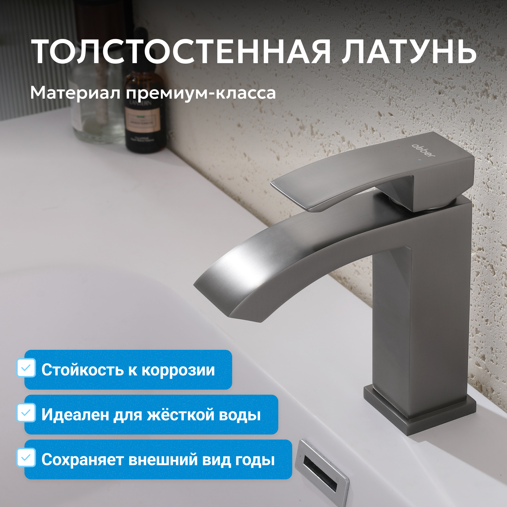 Корпус всех смесителей ABBER изготавливается из латуни техникой цельной отливки при атмосферном давлении, что обеспечивает высокую прочность изделия и устойчивость к перепадам давления.