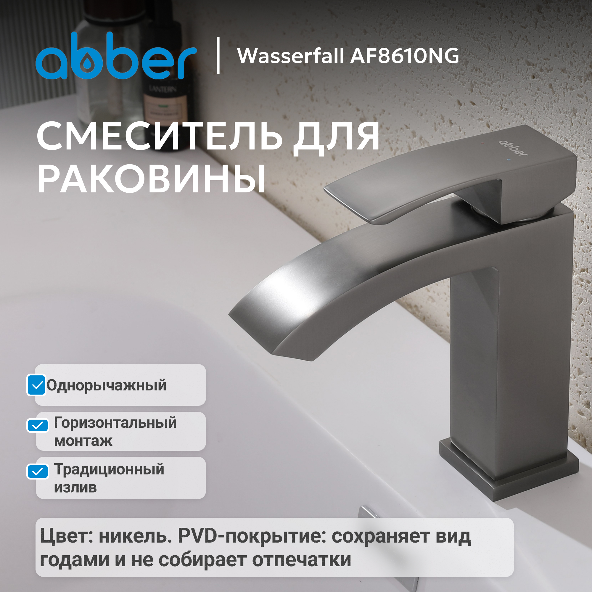 Смеситель ABBER Wasserfall AF8610NG для раковины, никель