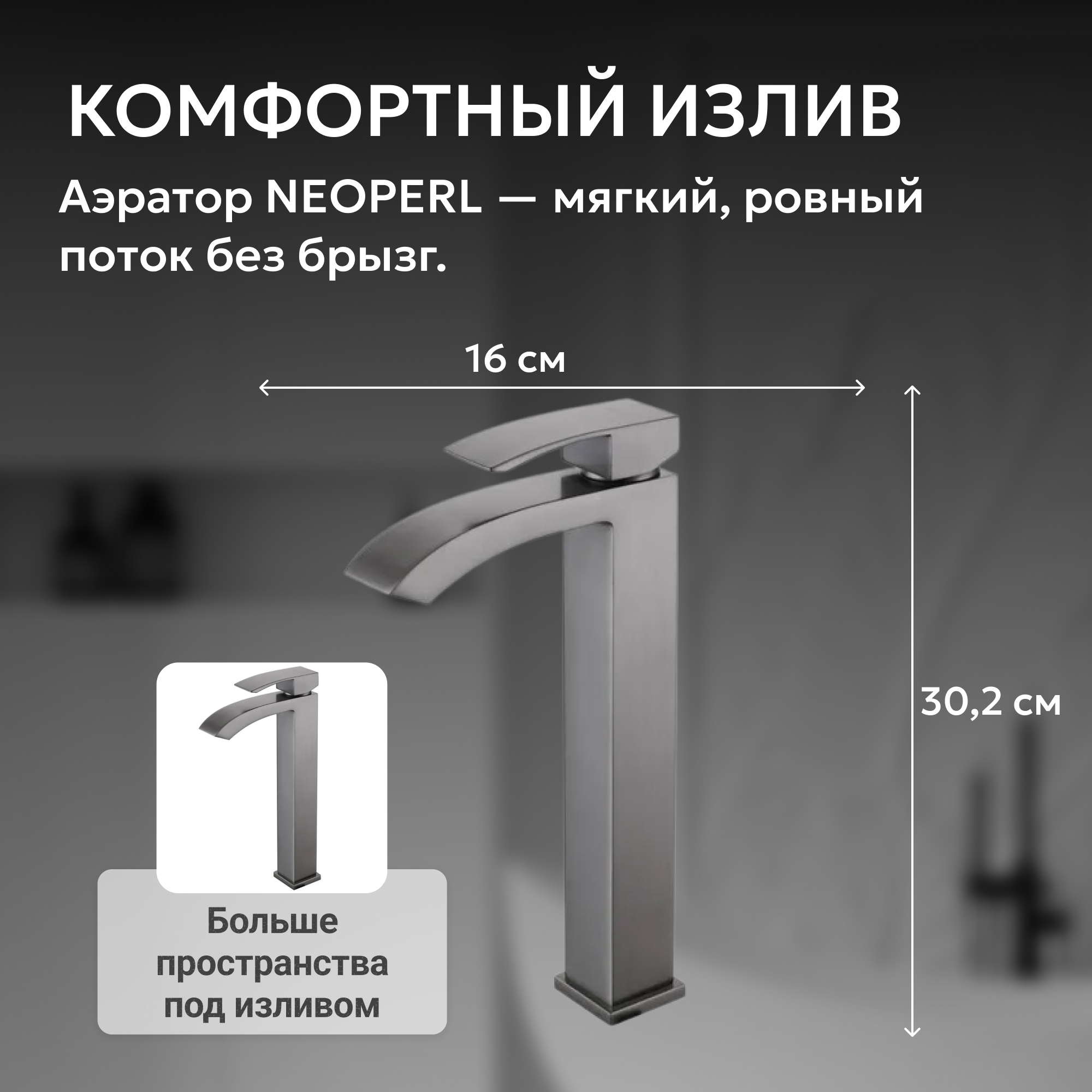 Никель - эффектный и привлекающий внимание цвет, стальной оттенок темно-серого который гармонично впишется в современный интерьер ванной комнаты.