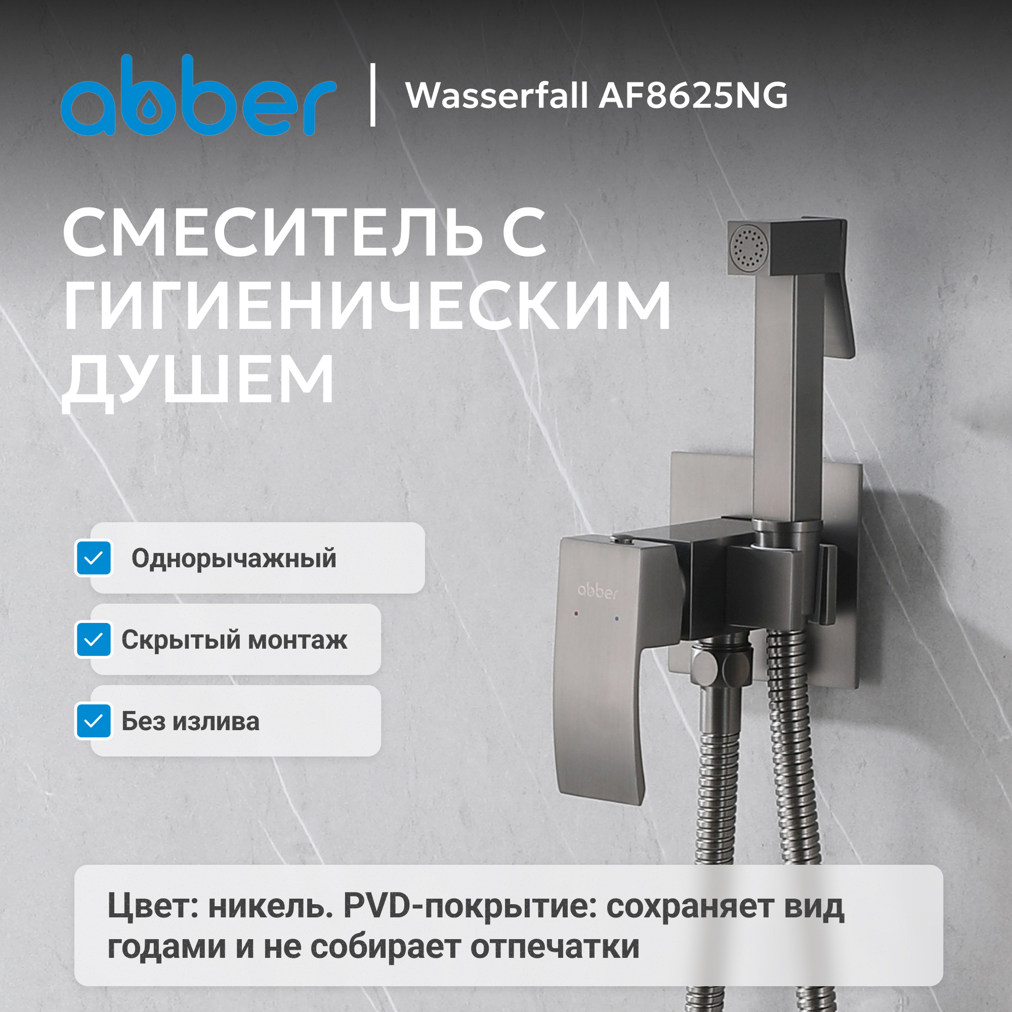 Смеситель ABBER Wasserfall AF8625NG с гигиеническим душем, никель