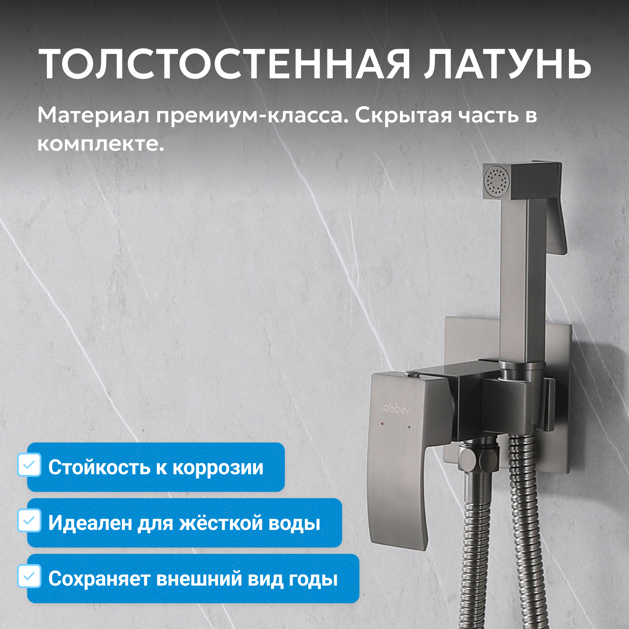 Корпус всех смесителей ABBER изготавливается из латуни техникой цельной отливки при атмосферном давлении, что обеспечивает высокую прочность изделия и устойчивость к перепадам давления.