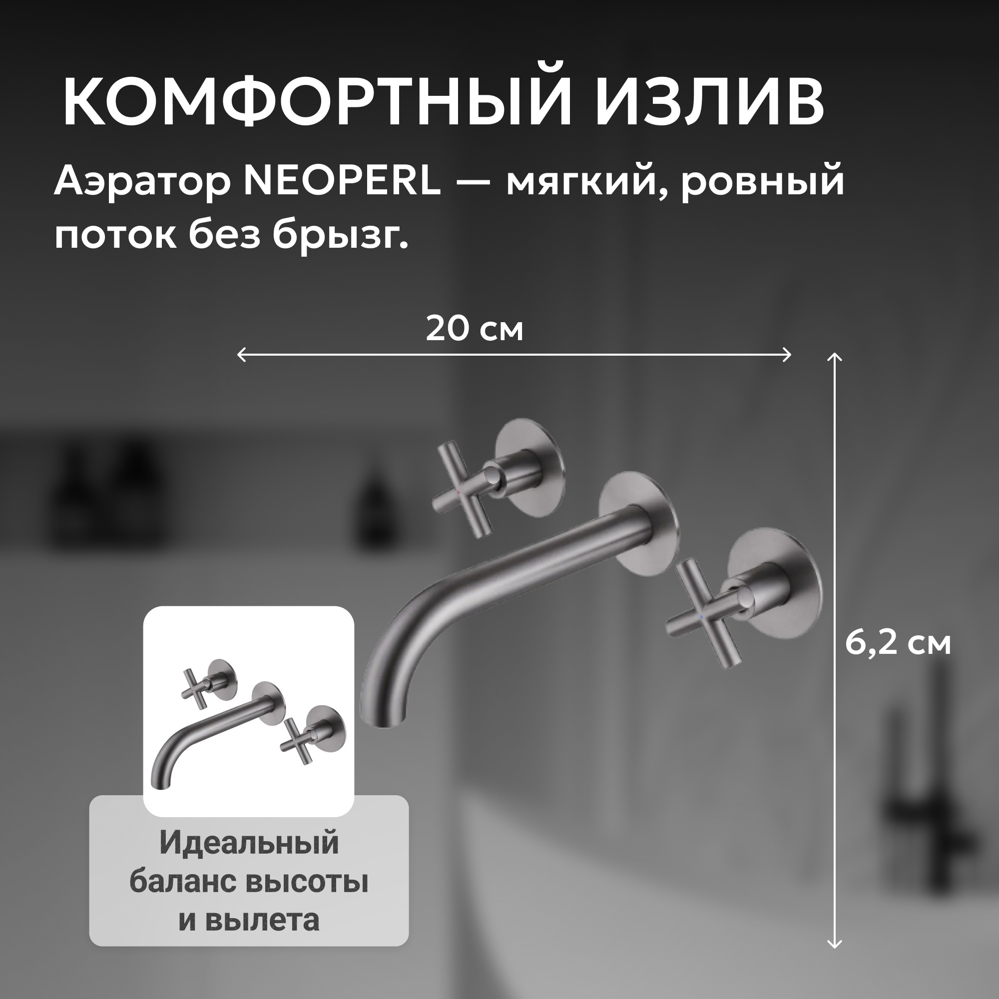 Никель - эффектный и привлекающий внимание цвет, стальной оттенок темно-серого который гармонично впишется в современный интерьер ванной комнаты.