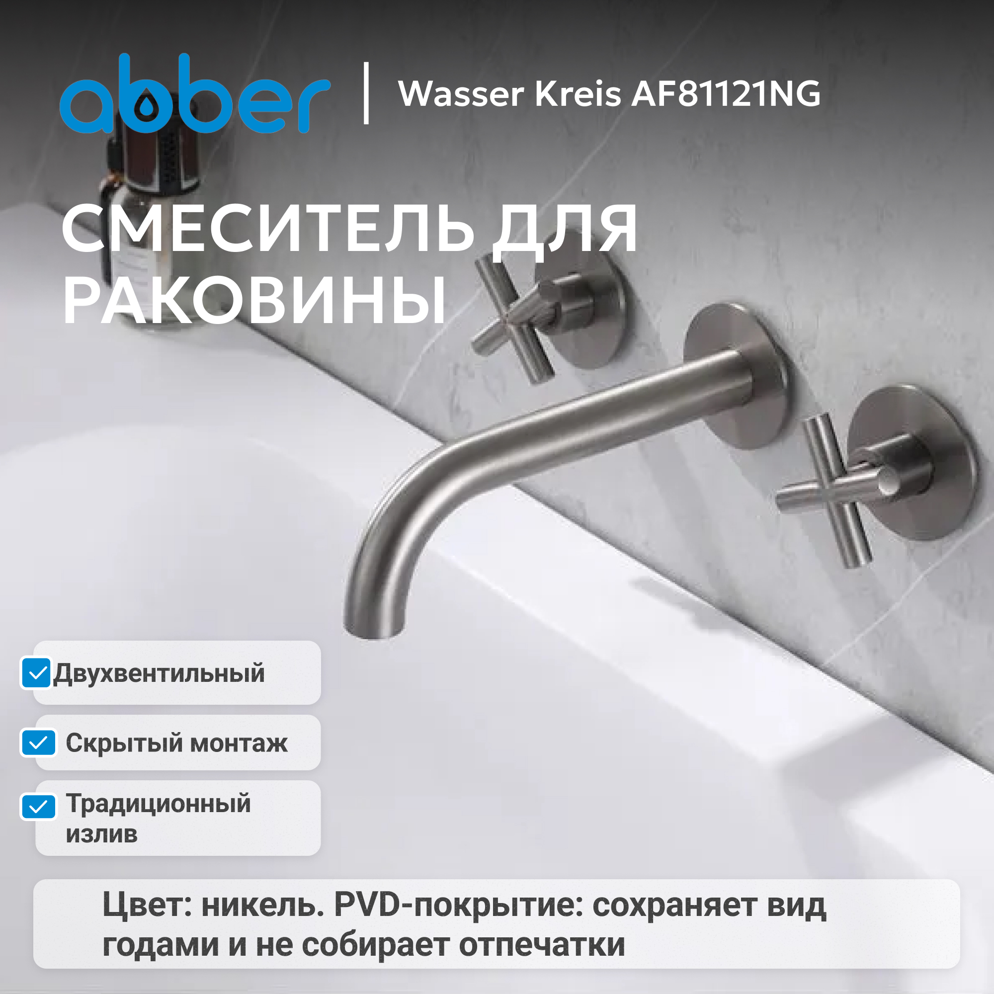 Смеситель ABBER Wasser Kreis AF81121NG для раковины скрытого монтажа, никель