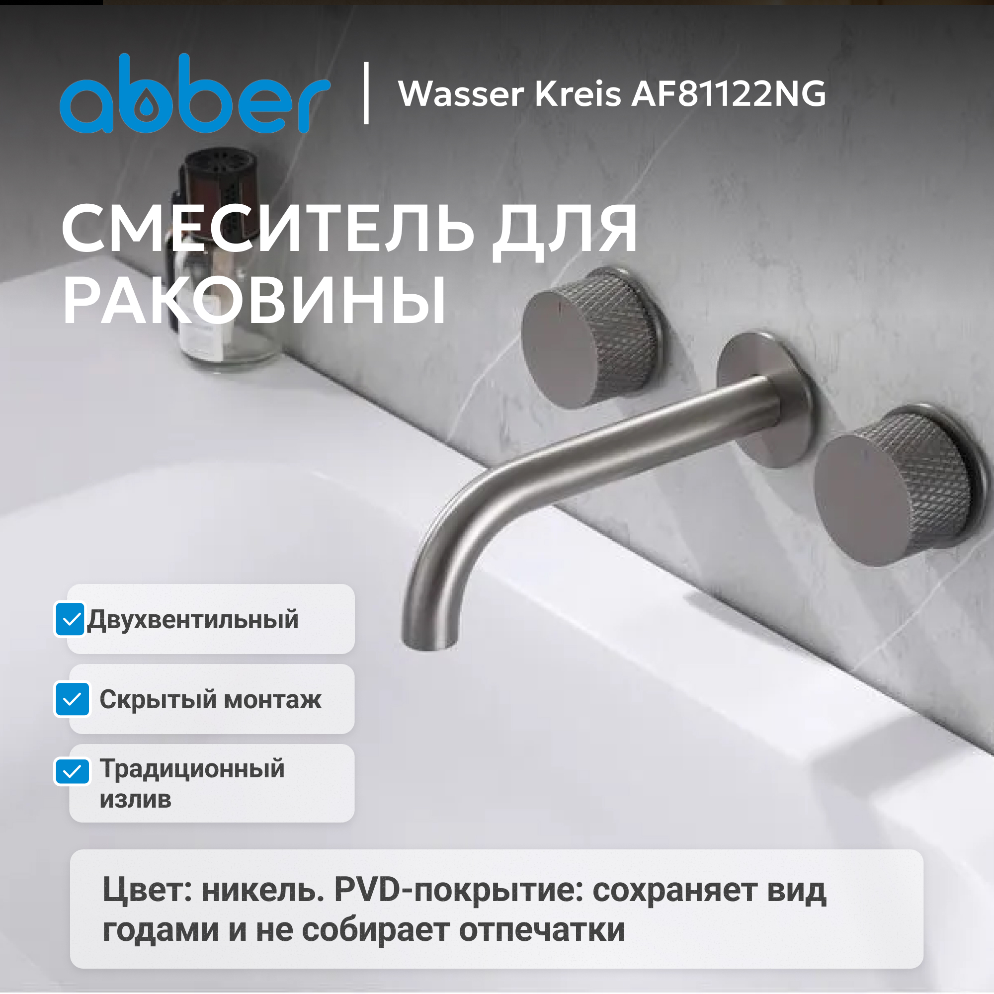 Смеситель ABBER Wasser Kreis AF81122NG для раковины скрытого монтажа, никель