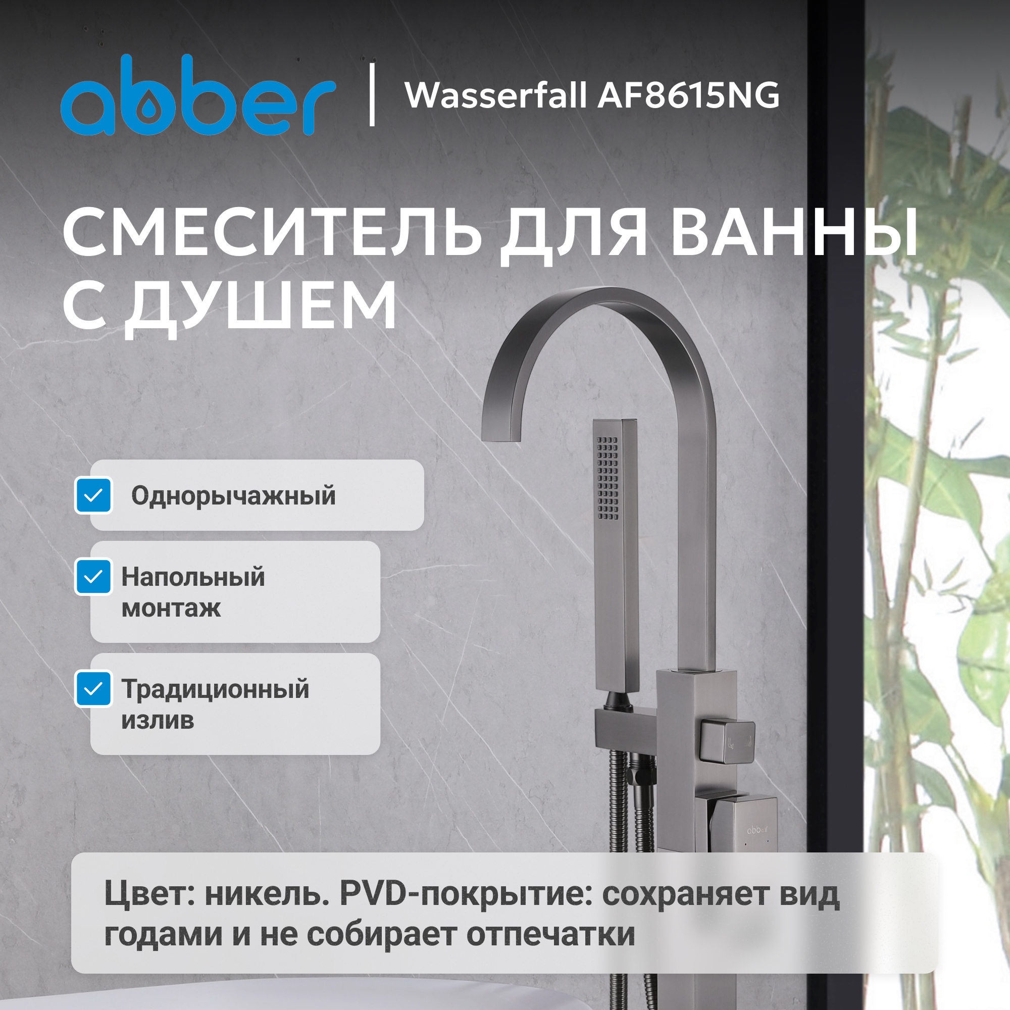 Смеситель ABBER Wasserfall AF8615NG напольный, никель