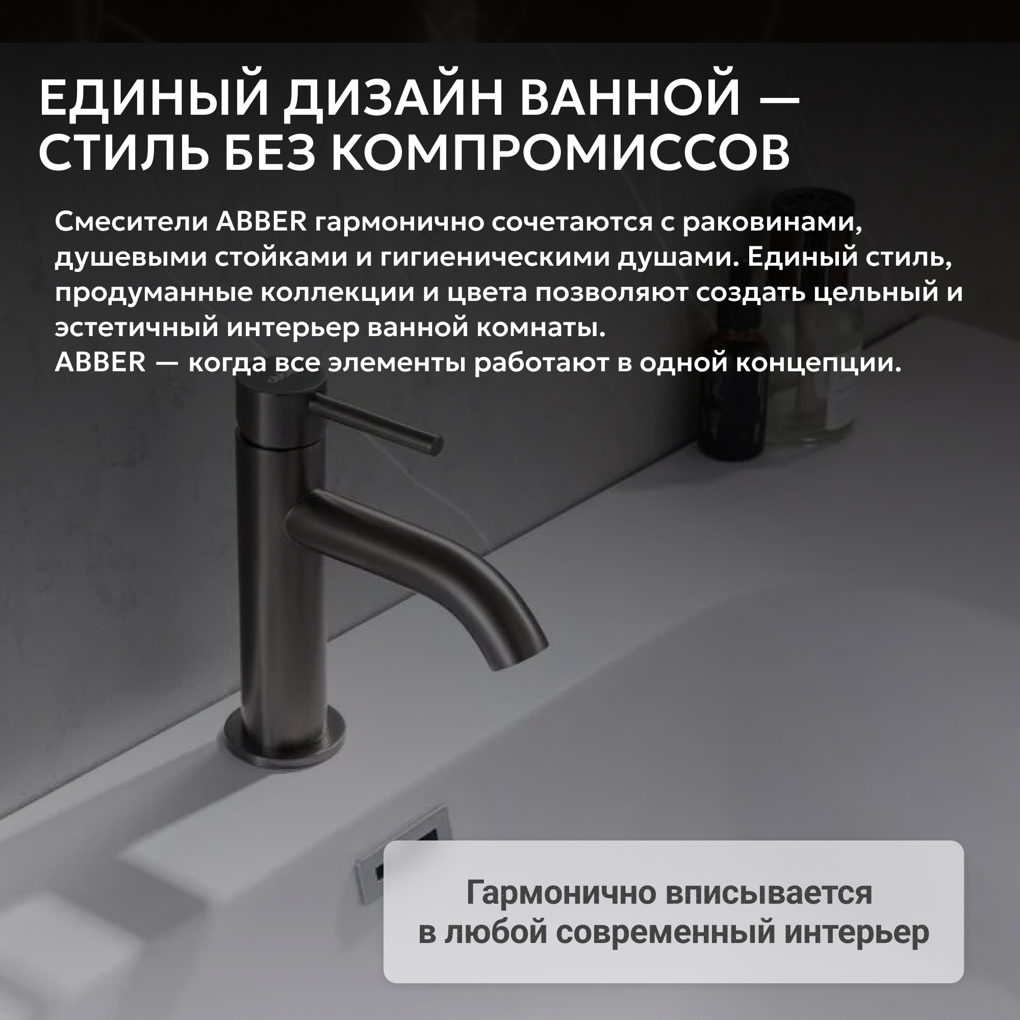 Корпус всех смесителей ABBER изготавливается из латуни техникой цельной отливки при атмосферном давлении, что обеспечивает высокую прочность изделия и устойчивость к перепадам давления.