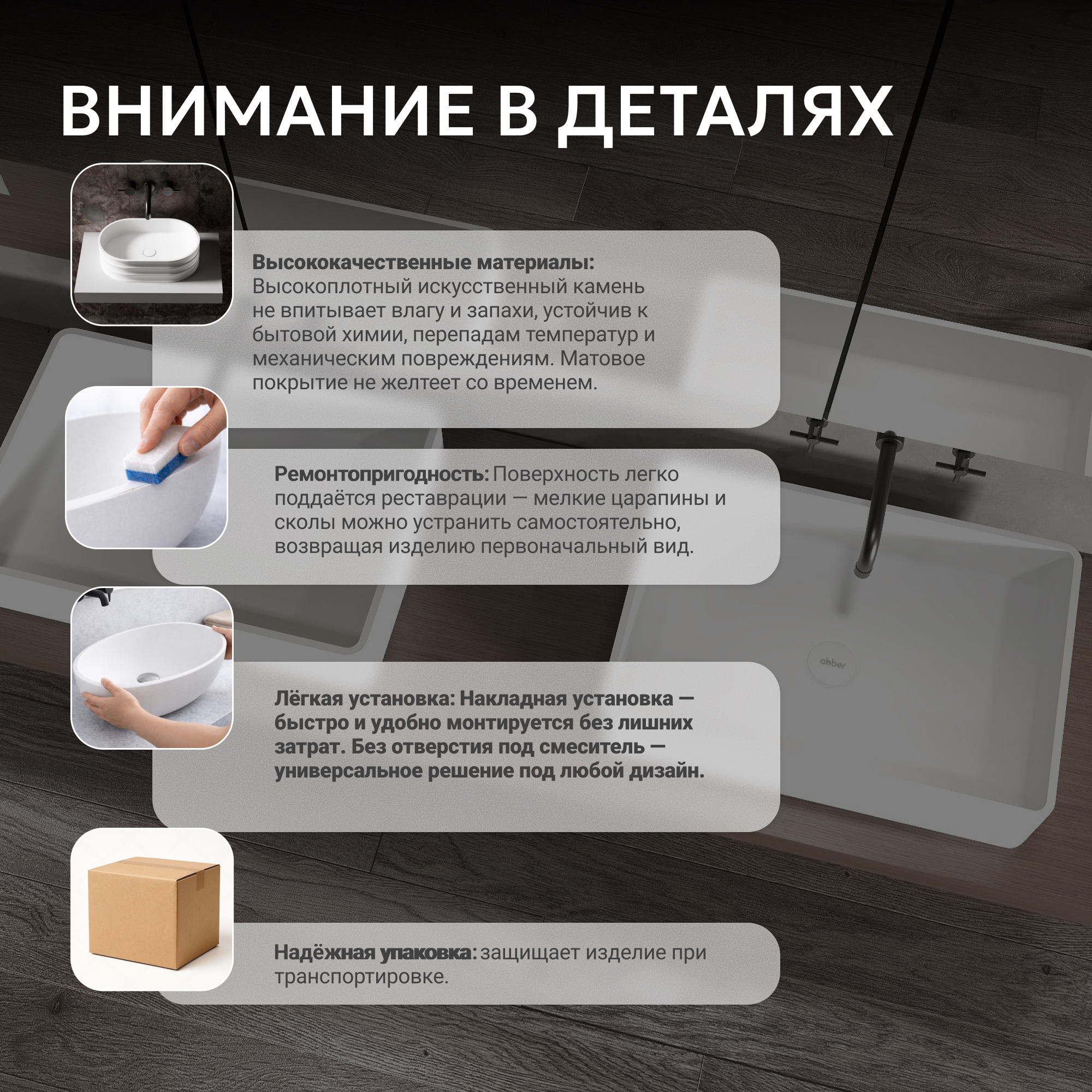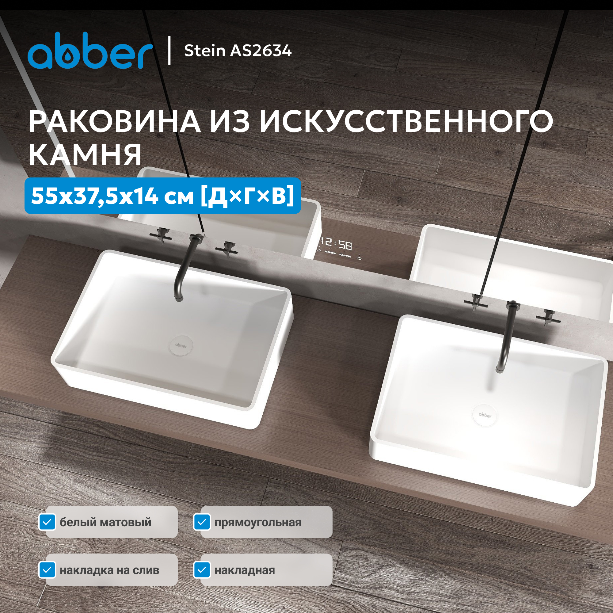 Раковина накладная ABBER Stein AS2634 белая матовая