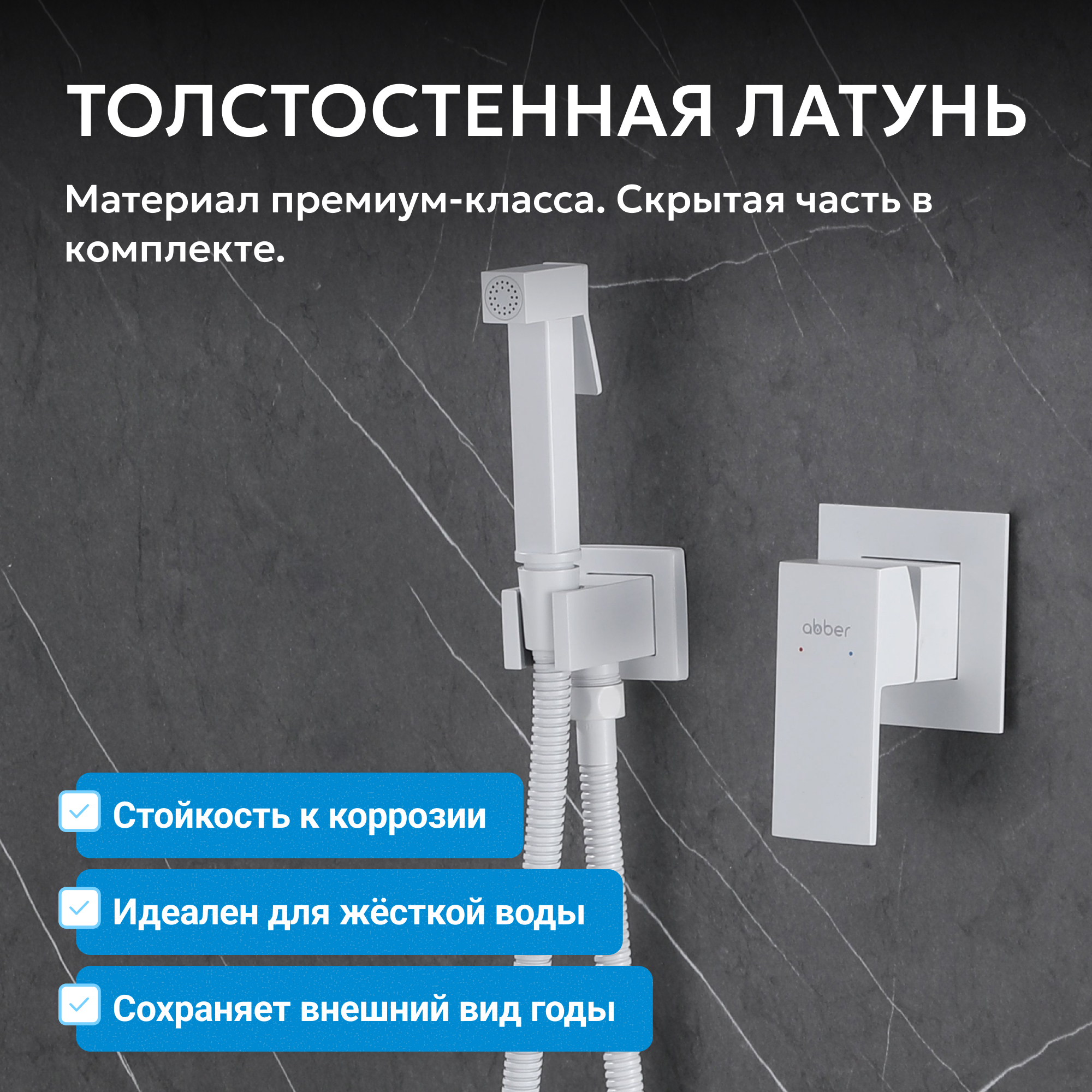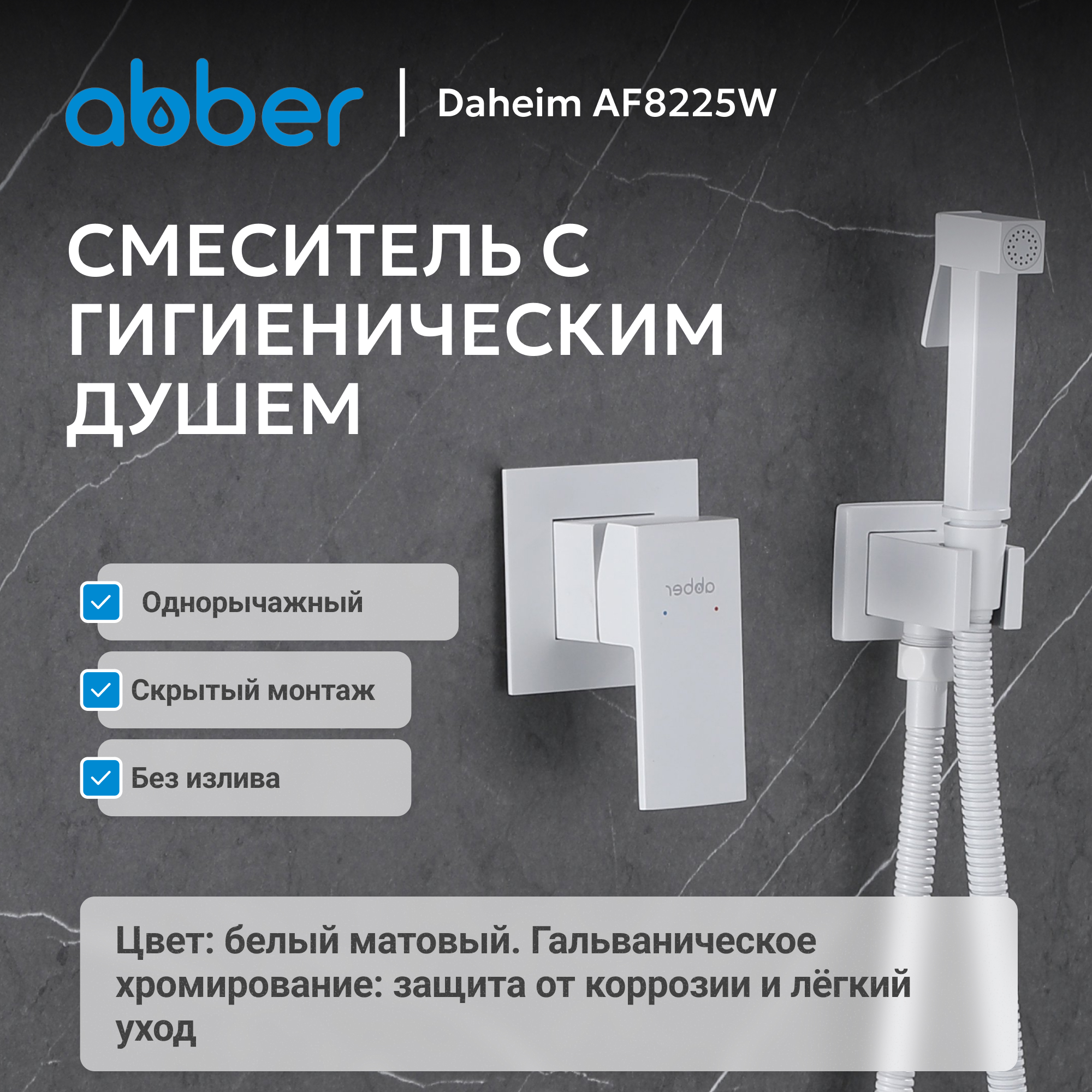 Смеситель ABBER Daheim AF8225W с гигиеническим душем, белый матовый