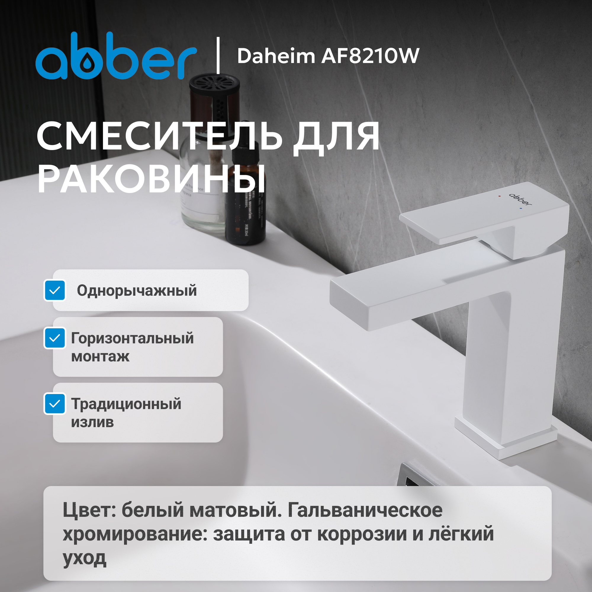 Смеситель ABBER Daheim AF8210W для раковины, белый матовый