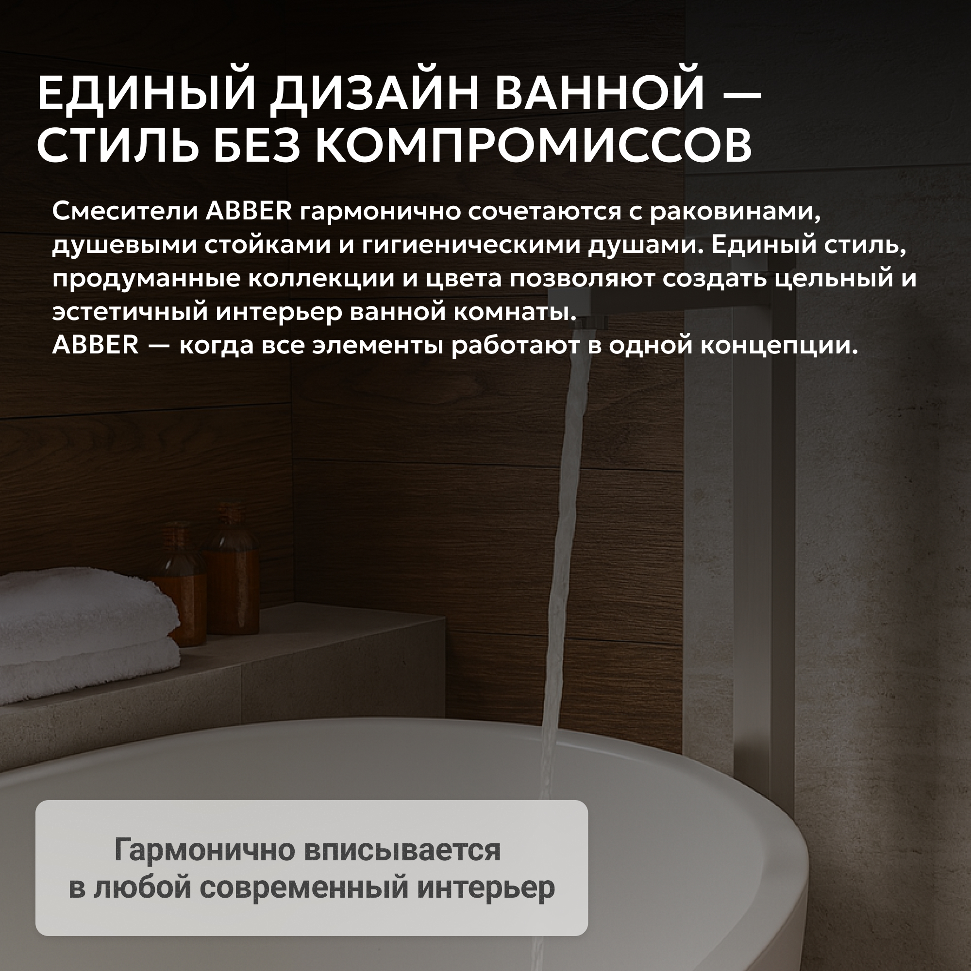 Корпус всех смесителей ABBER изготавливается из латуни техникой цельной отливки при атмосферном давлении, что обеспечивает высокую прочность изделия и устойчивость к перепадам давления.