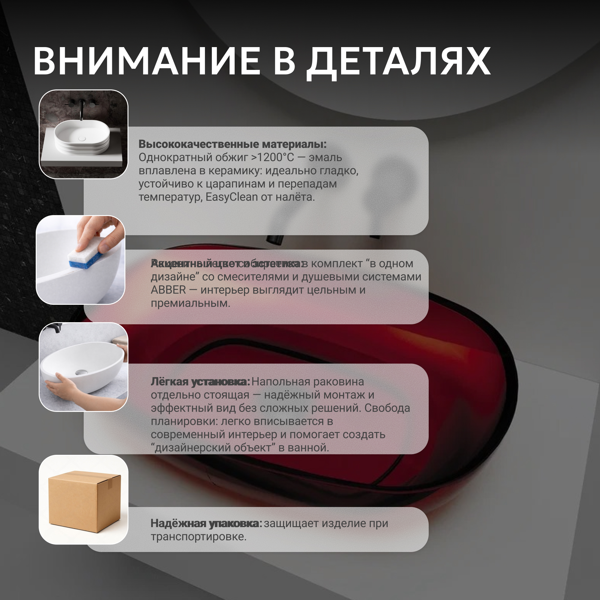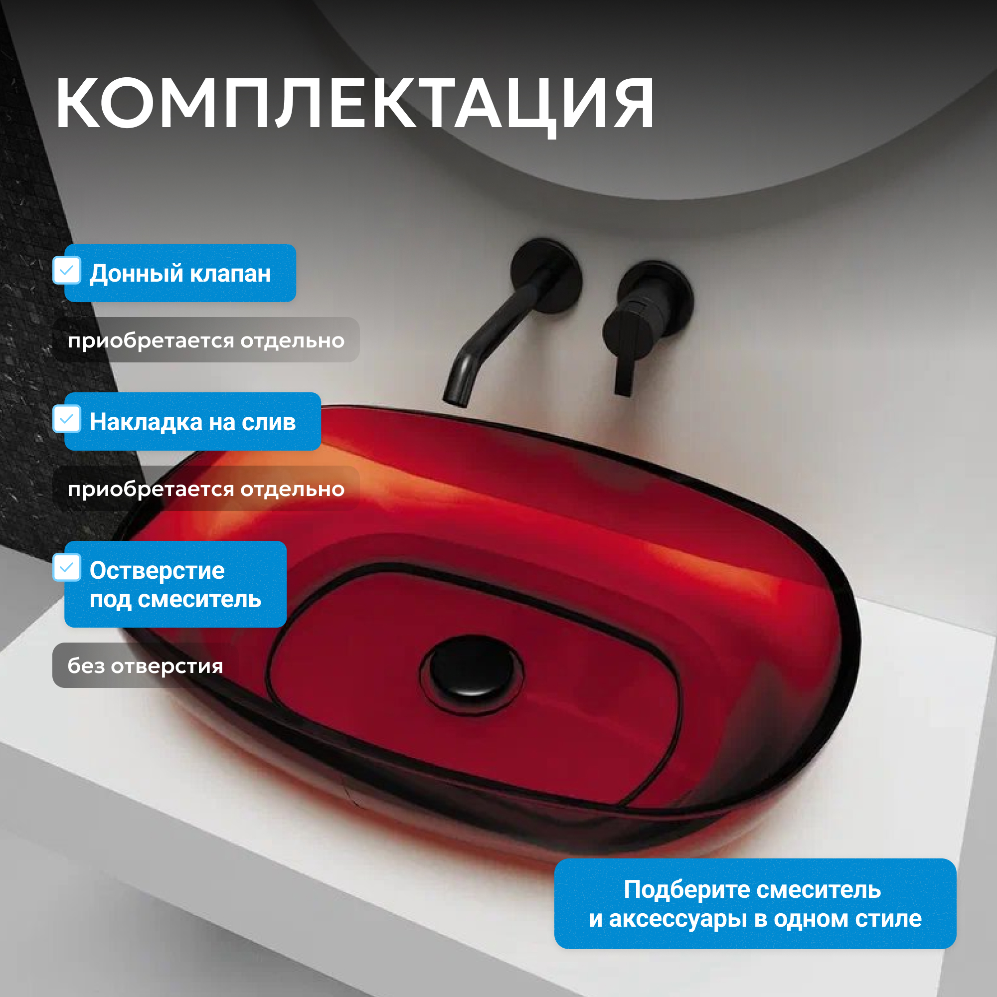 Раковина накладная прозрачная ABBER Kristall AT2805Rubin красная