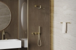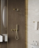 Душевая система в цвете Золото брашированное с 5-слойным PVD покрытием, что обеспечивает приятный внешний вид и длительный срок эксплуатации.