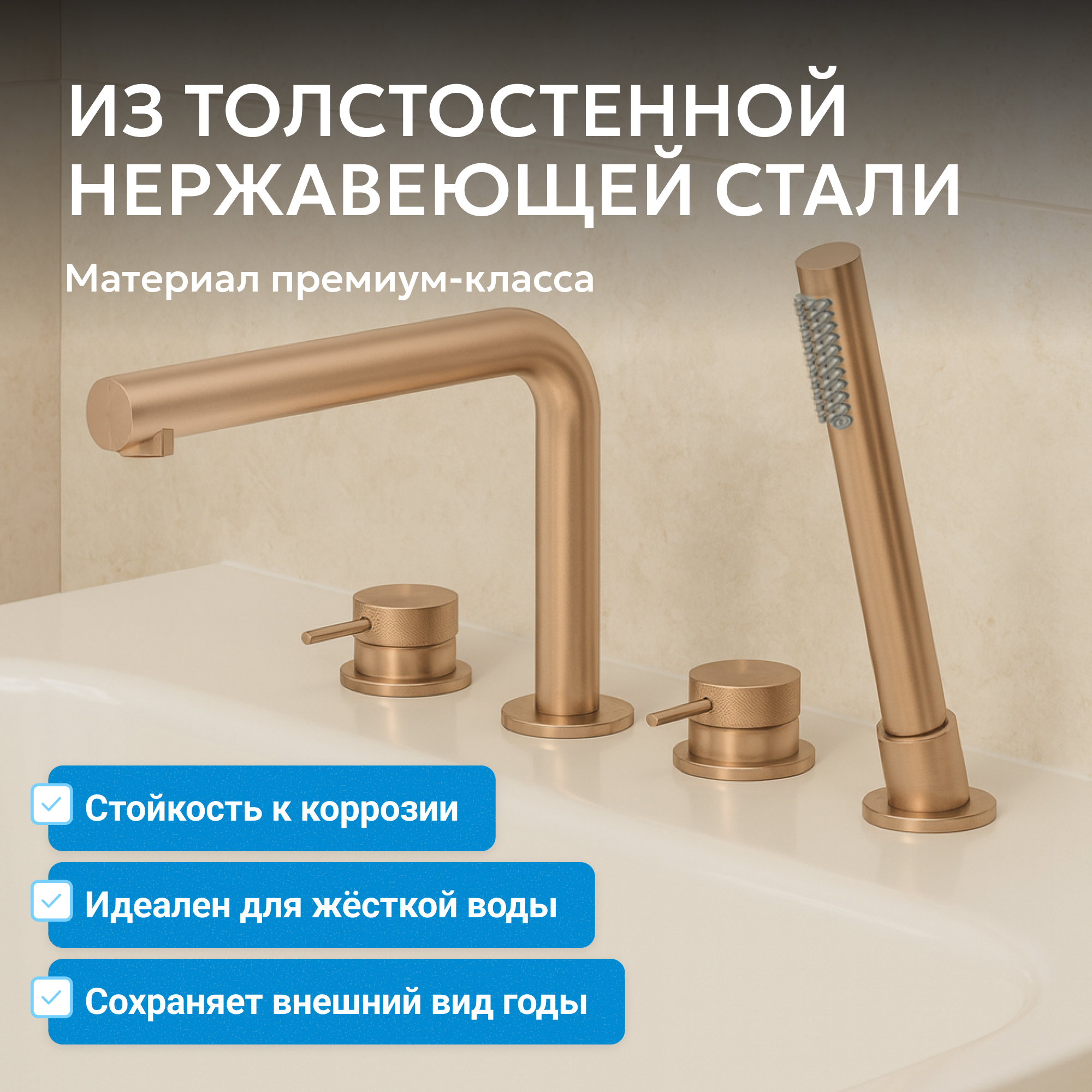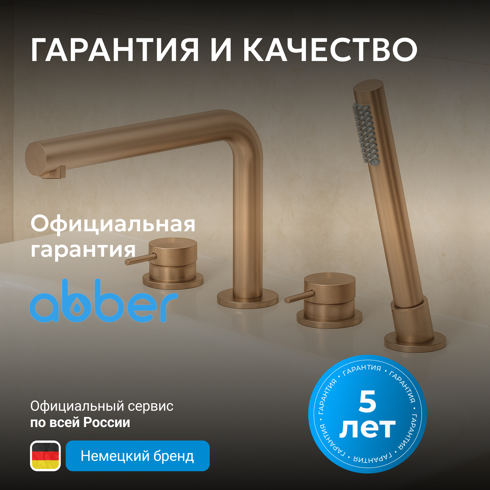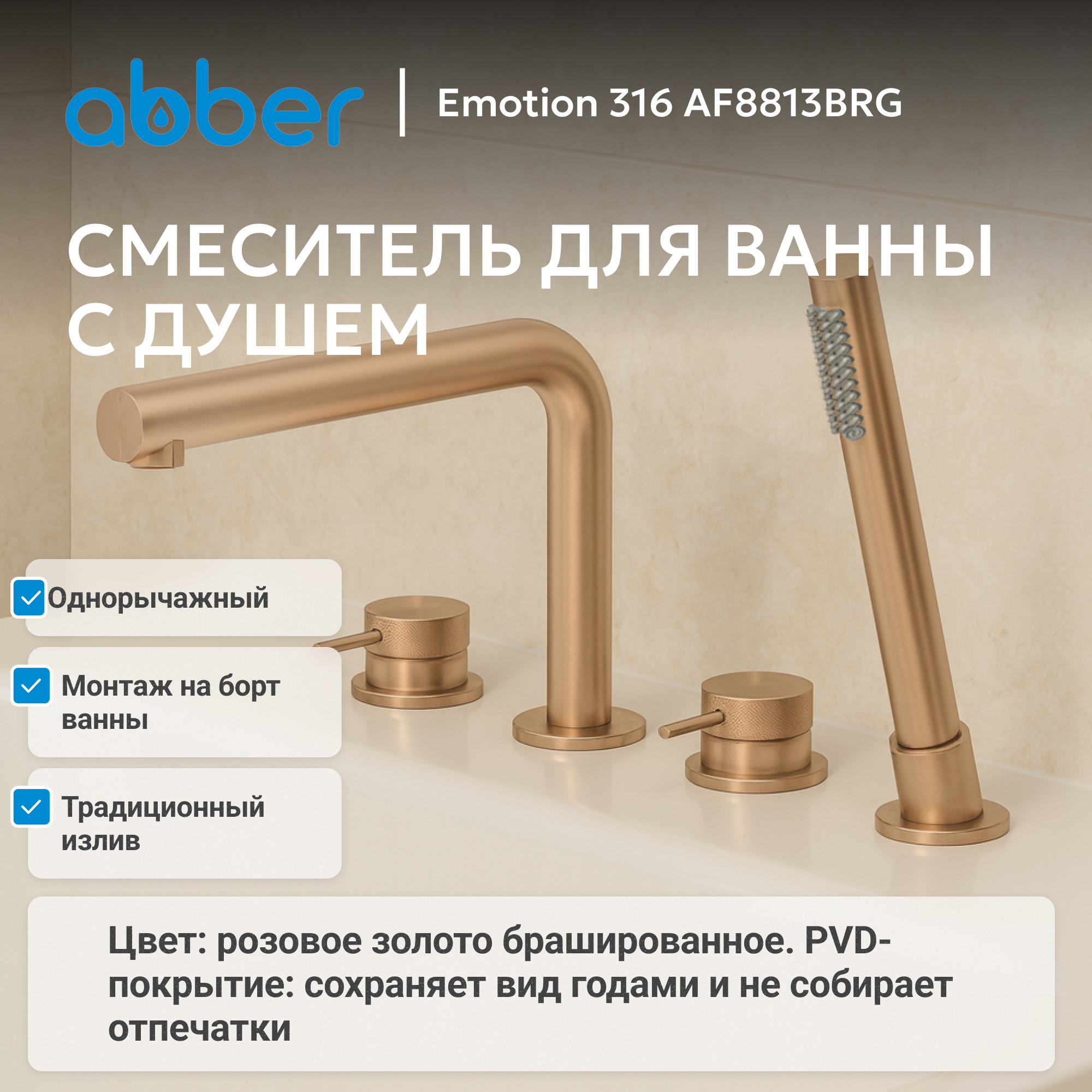Смеситель ABBER Emotion 316 AF8813BRG на борт ванны, розовое золото брашированное