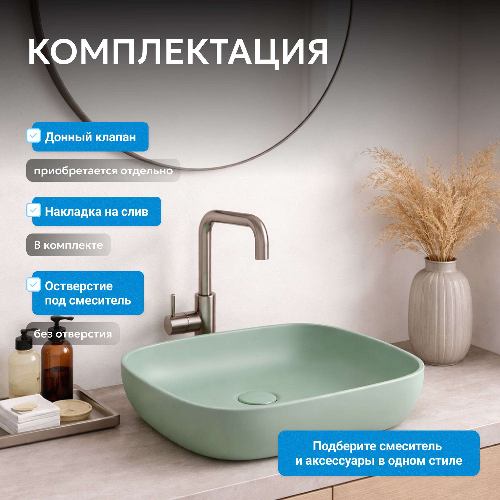 - накладные раковины ABBER можно установить на столешницу, тумбу, консоль