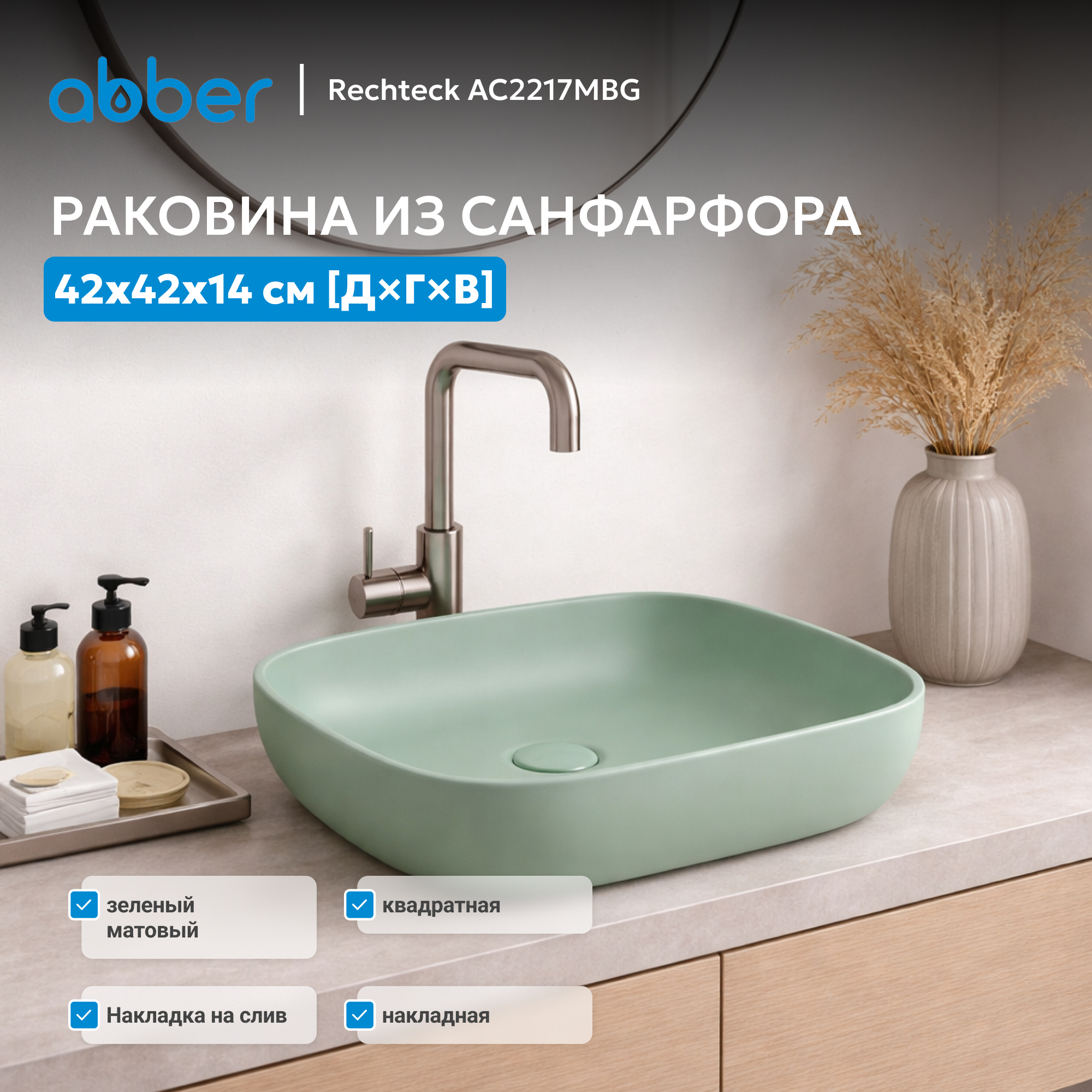 Раковина накладная ABBER Rechteck AC2217MBG зеленая матовая