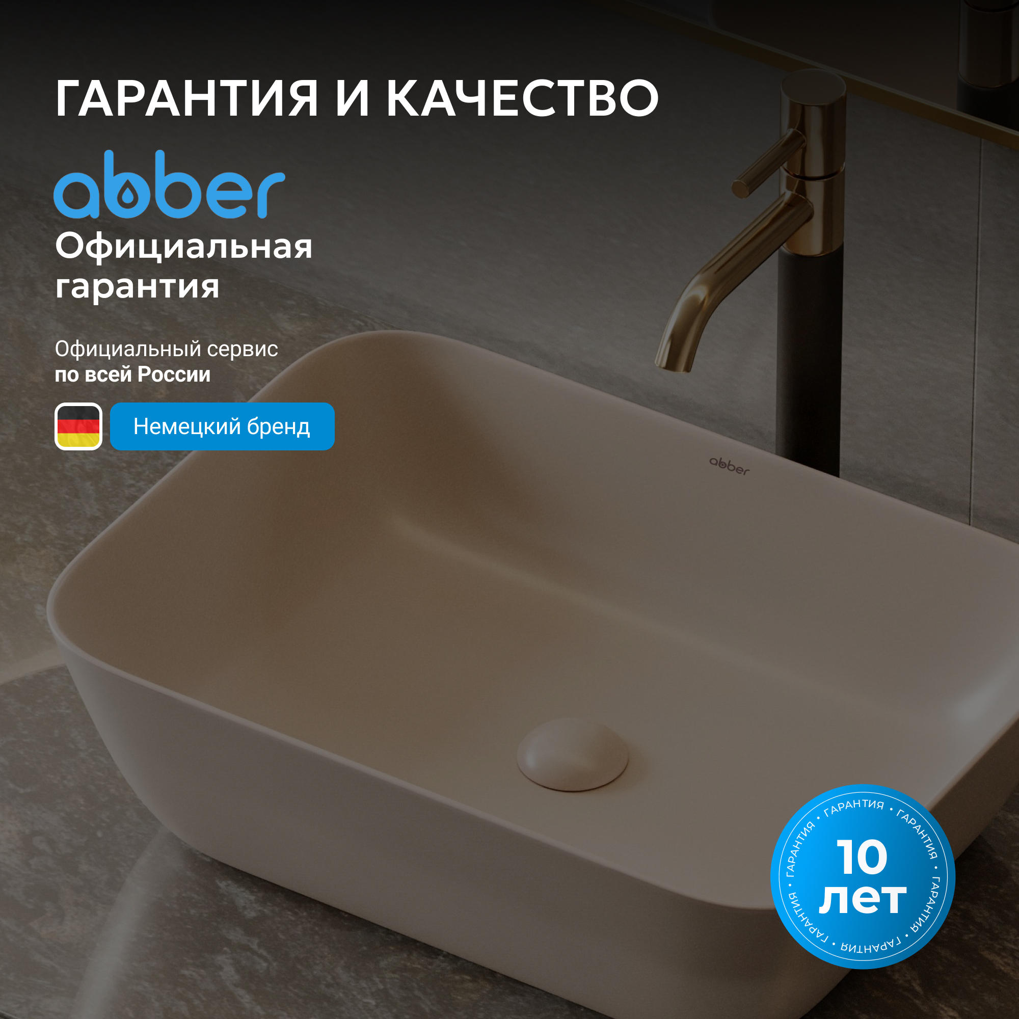 Раковины ABBER изготавливаются по уникальной технологии однократного высокотемпературного обжига керамики в печи (температура свыше 1200°С). Эмаль при таком процессе вплавляется в структуру керамики, образуя прочную идеально гладкую поверхность устойчивую к царапинам с эффектом EasyClean - защита от загрязнений и известкового налета.