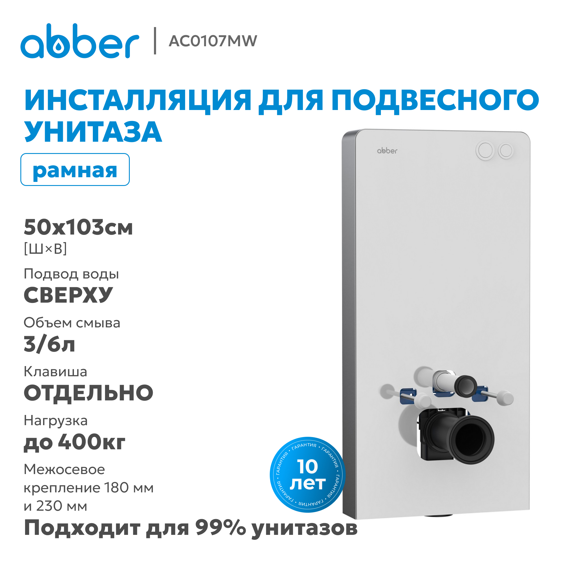 Инсталляционный модуль внешнего монтажа ABBER AC0107MW для подвесного унитаза, белый