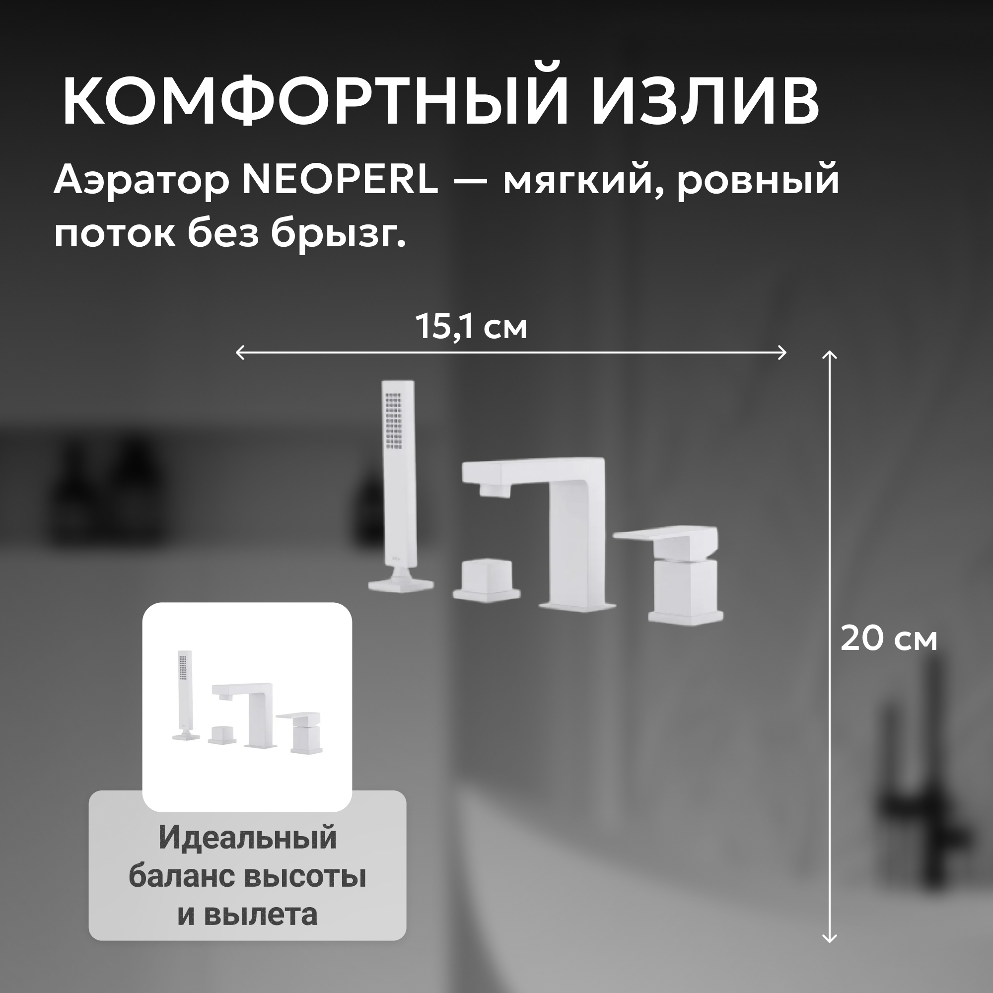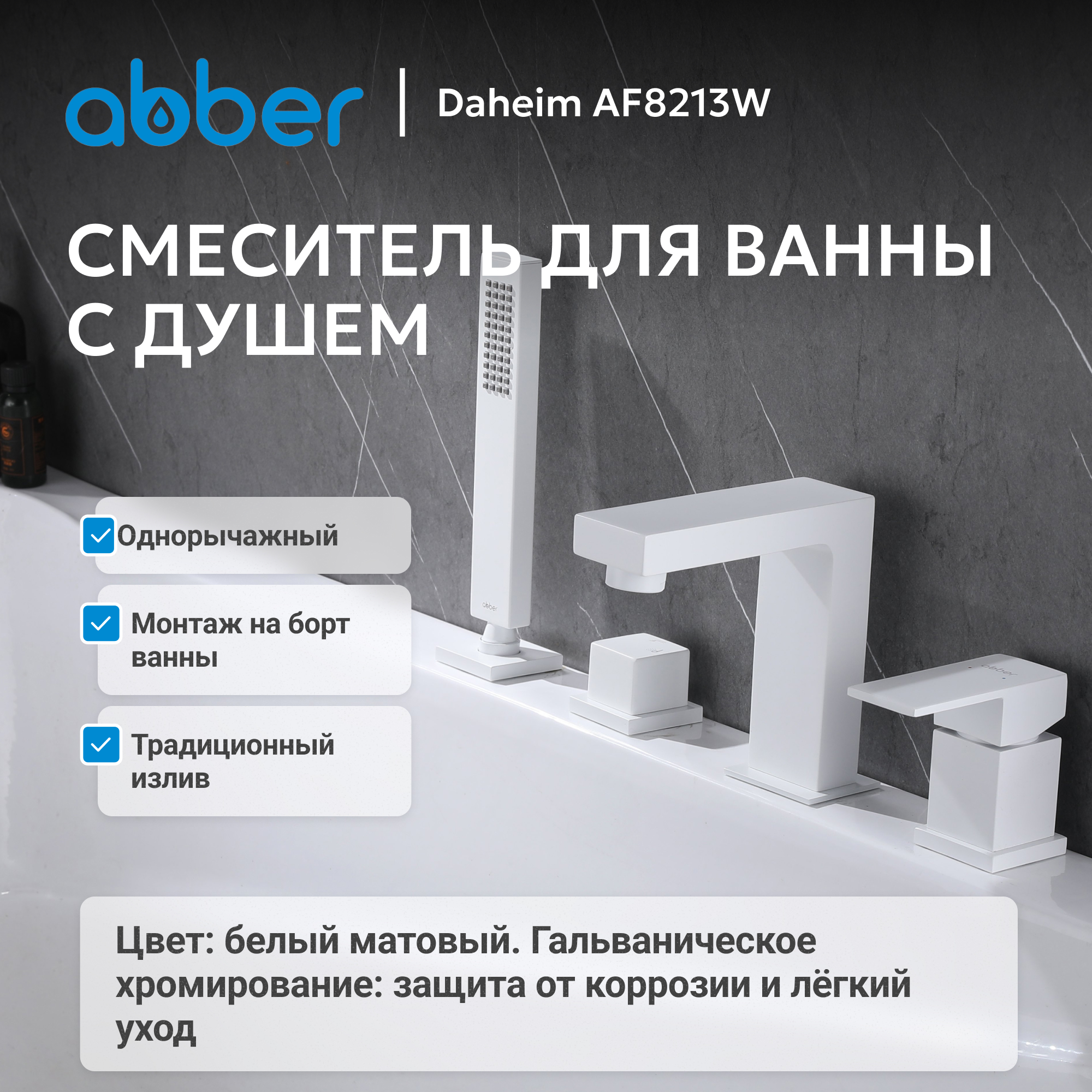 Смеситель ABBER Daheim AF8213W на борт ванны, белый матовый