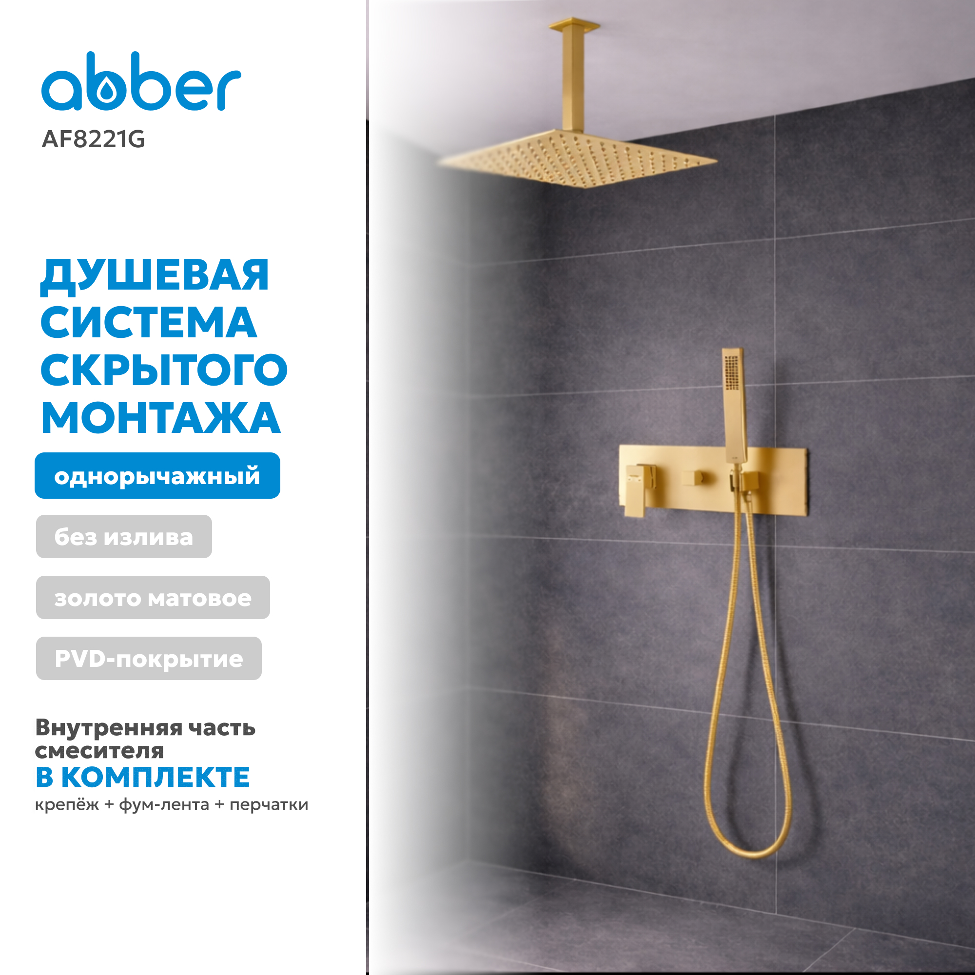 Душевая система ABBER Daheim AF8221G скрытого монтажа без излива, золото матовое