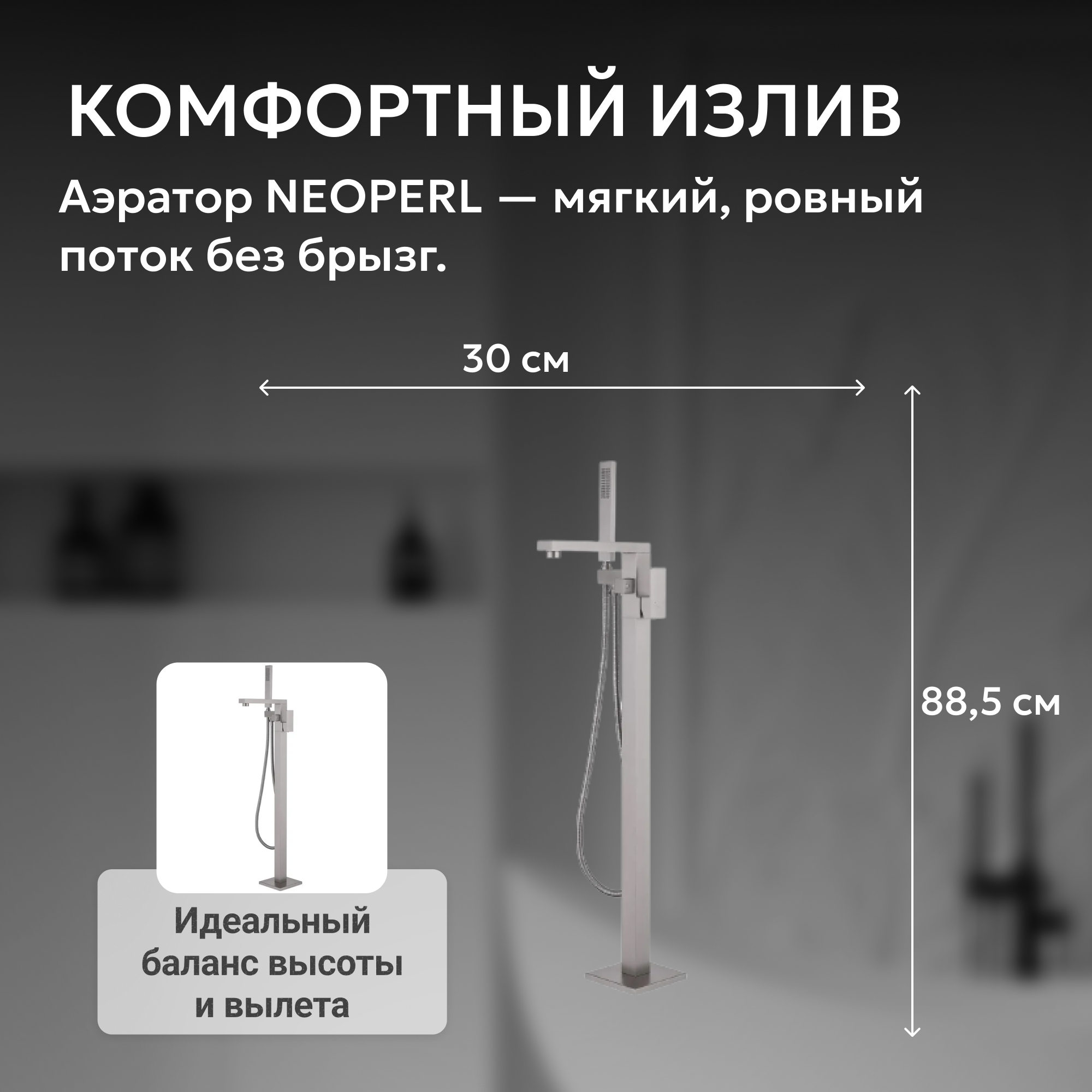 Смеситель ABBER Daheim AF8215SP напольный для ванны с душем, сатин