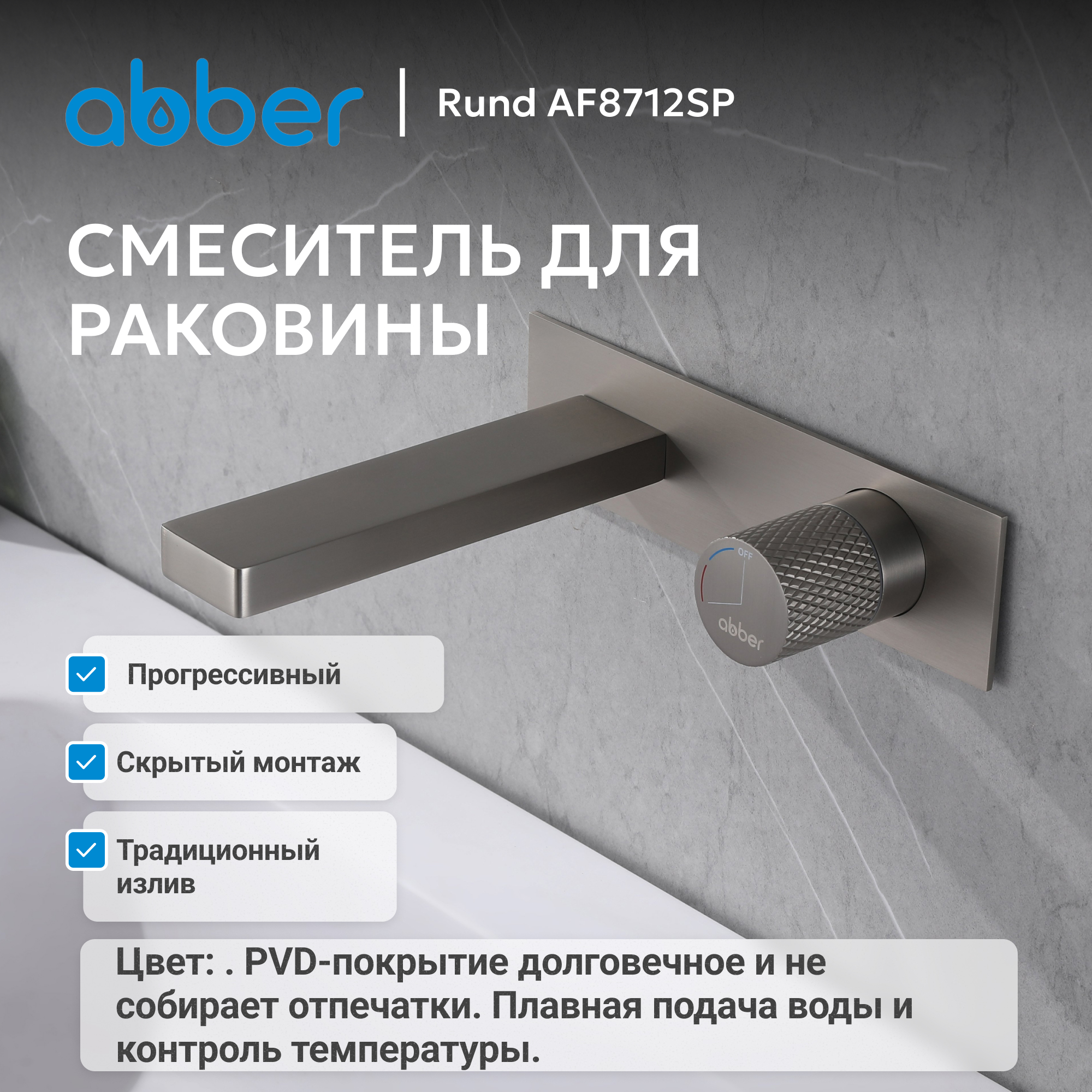 Смеситель ABBER Rund AF8712SP для раковины скрытого монтажа, сатин