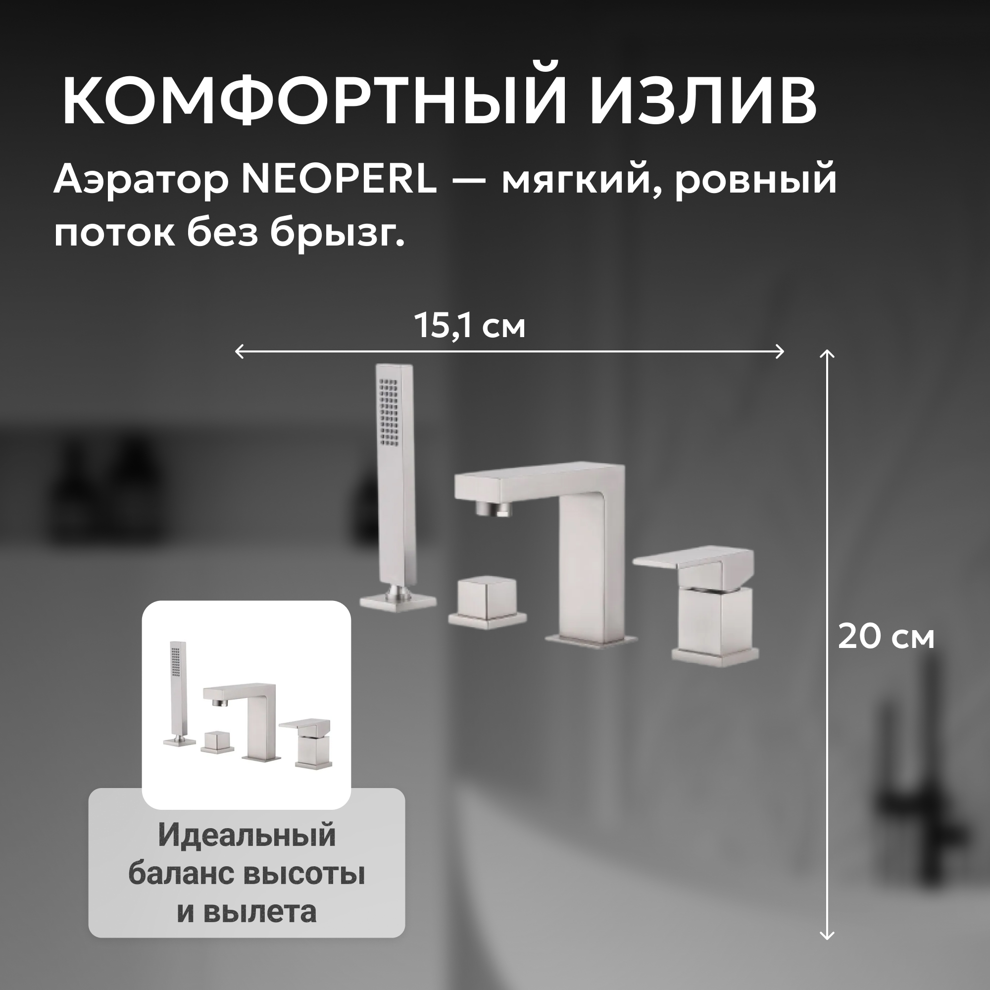 Смеситель ABBER Daheim AF8213SP на борт ванны, сатин