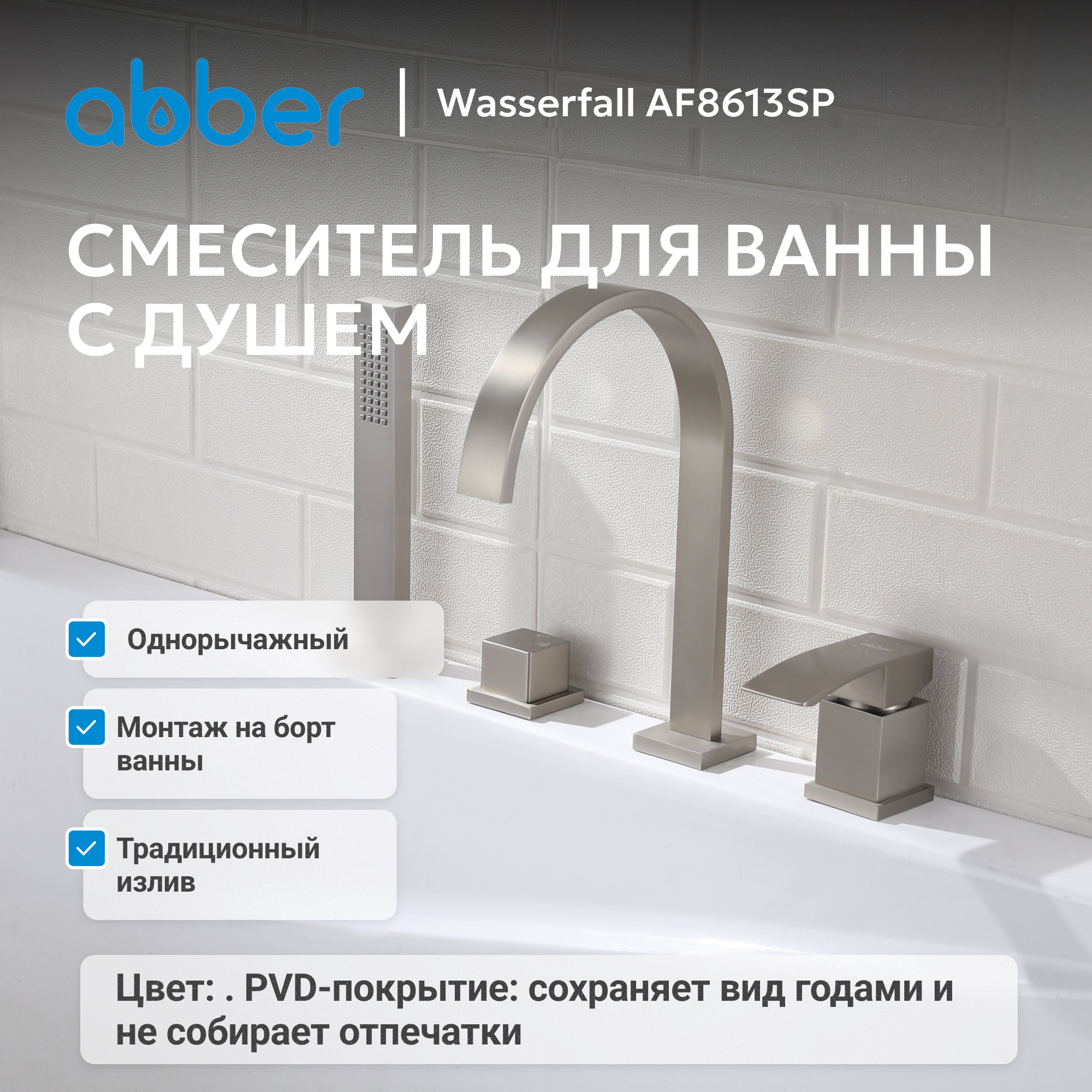 Смеситель ABBER Wasserfall AF8613SP на борт ванны, сатин
