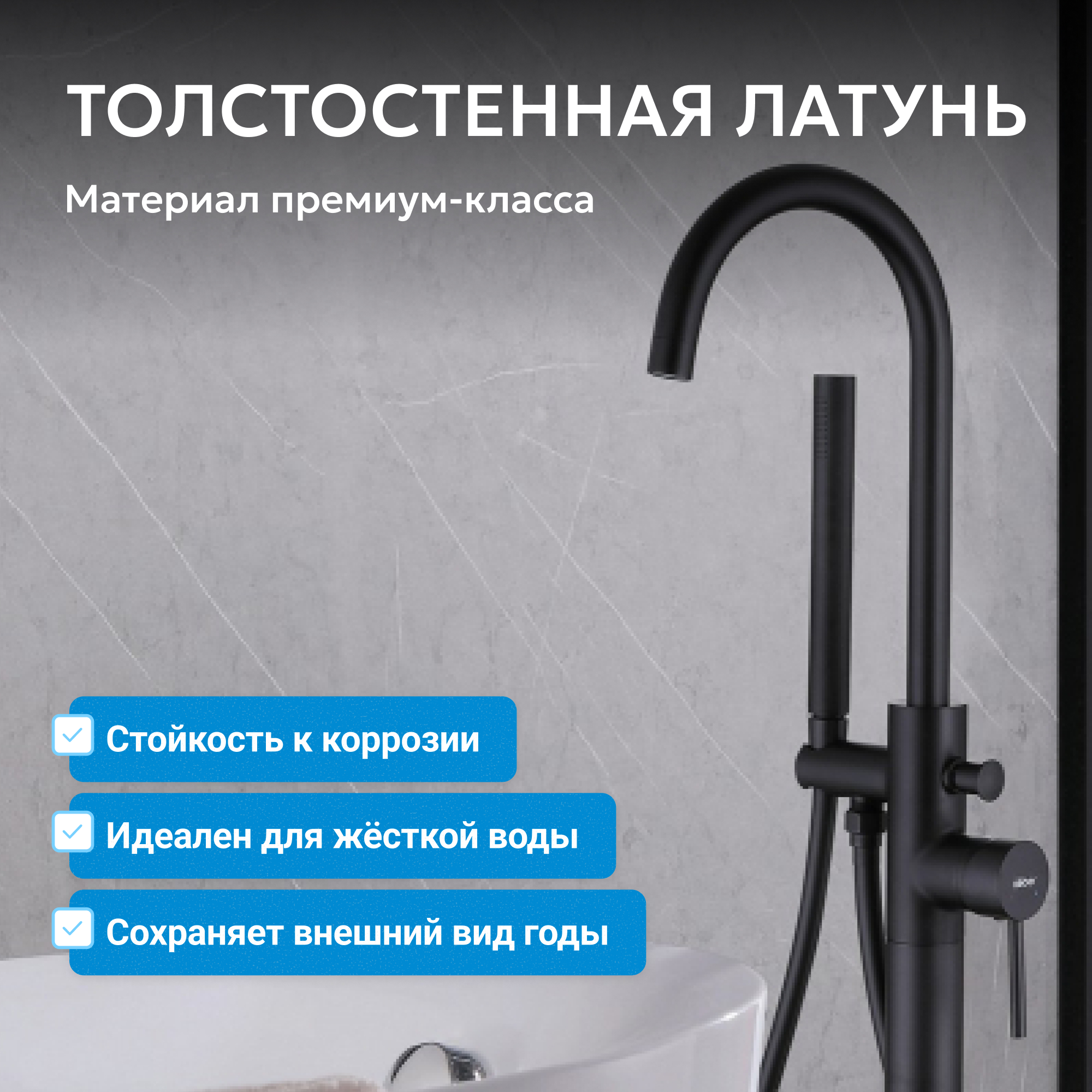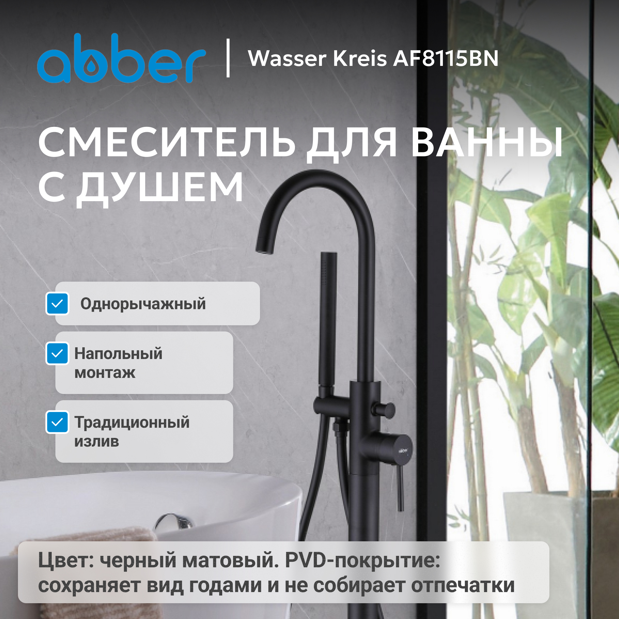 Смеситель ABBER Wasser Kreis AF8115BN напольный для ванны, черный матовый