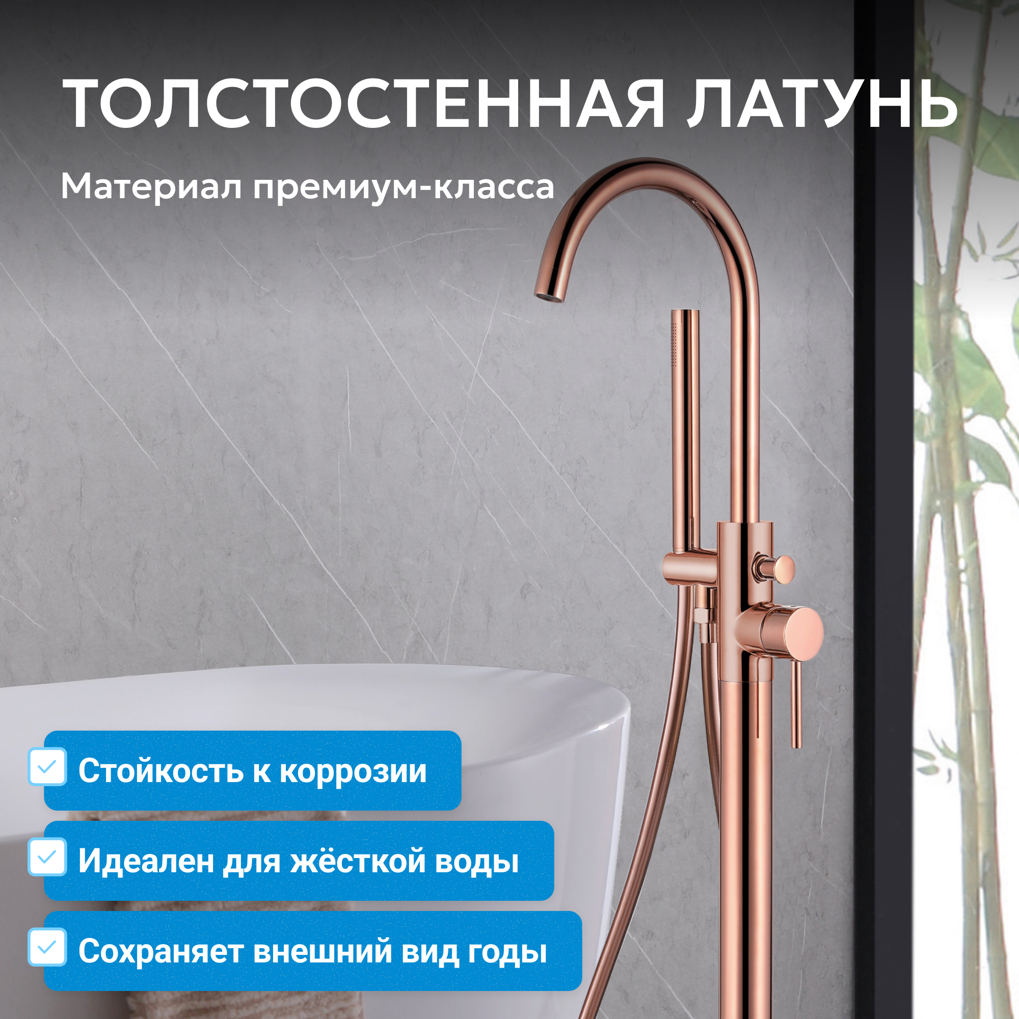 Смеситель ABBER Wasser Kreis AF8115RGN напольный для ванны, розовое золото
