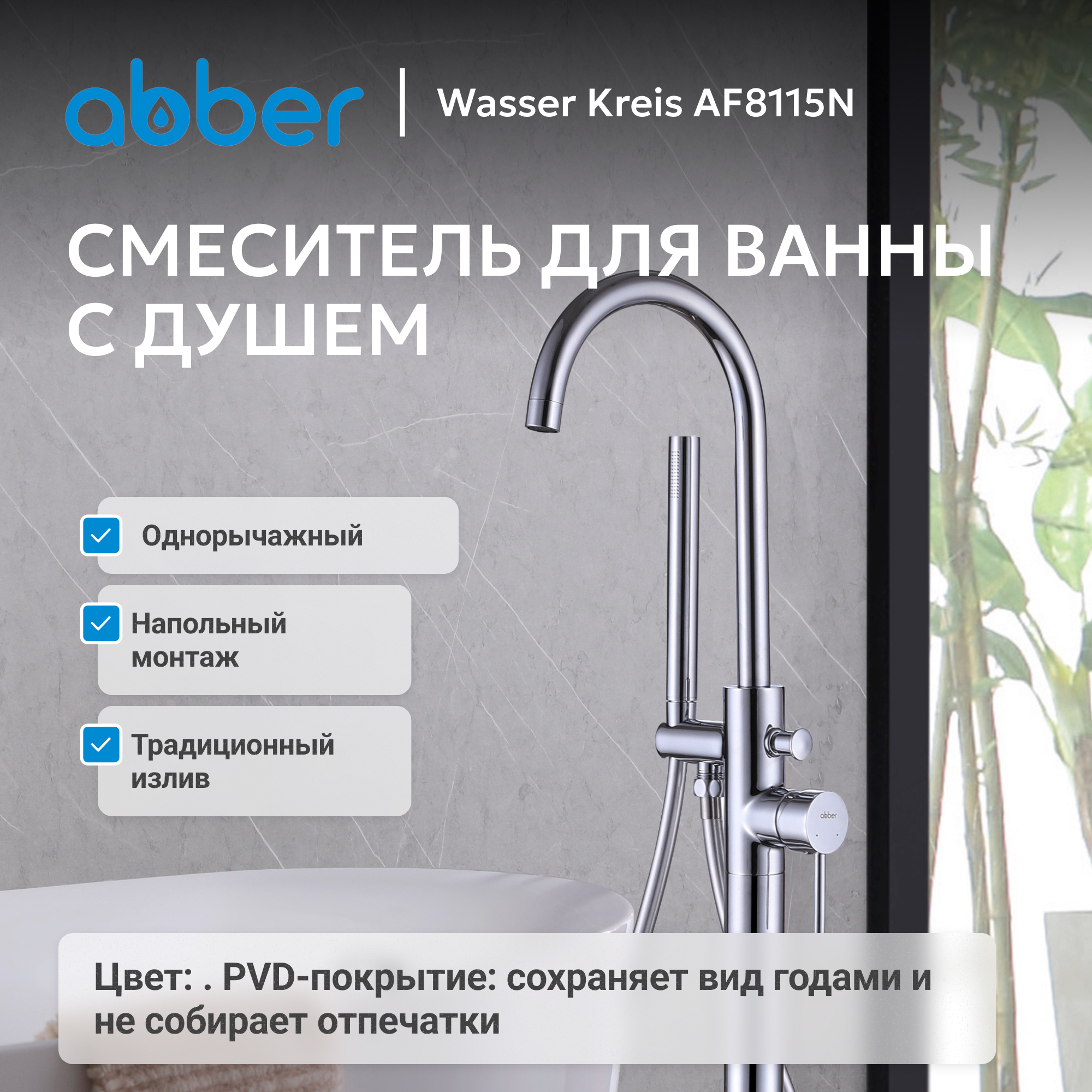 Смеситель ABBER Wasser Kreis AF8115N напольный для ванны, хром