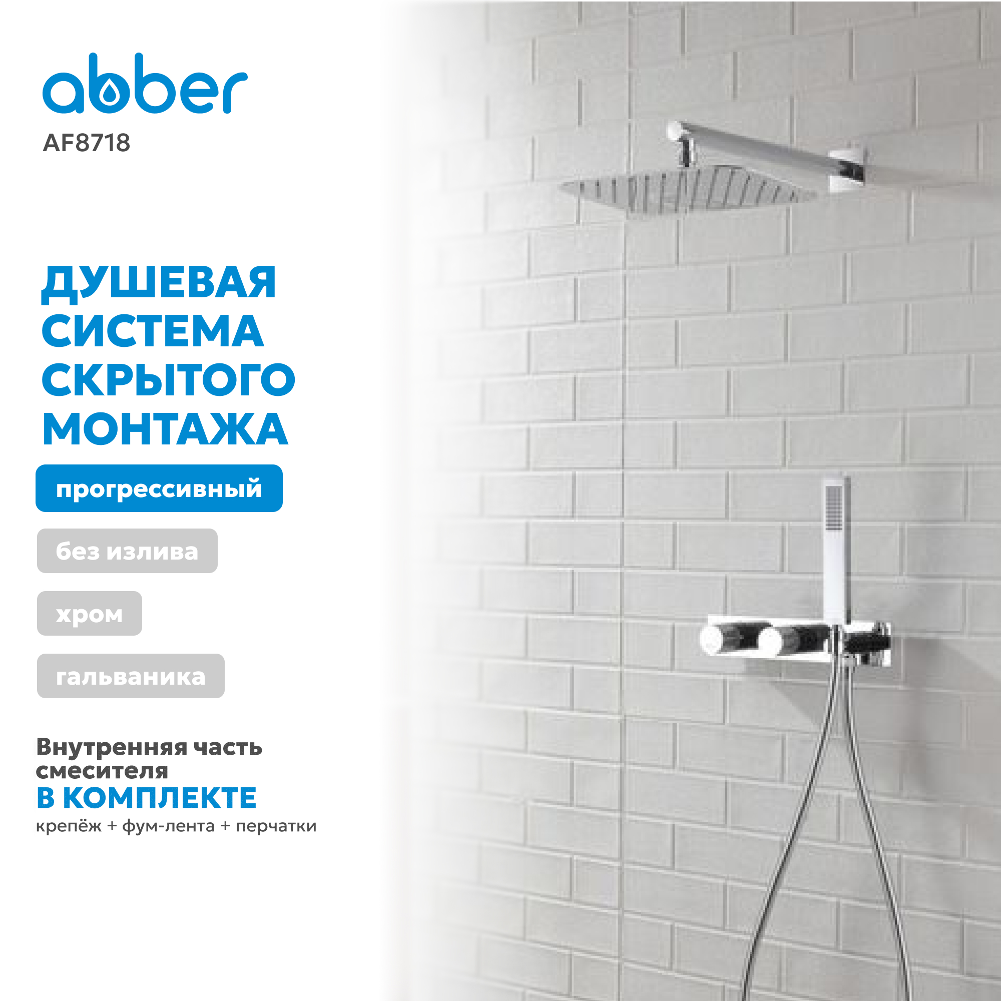 Душевая система ABBER Rund AF8718 скрытого монтажа без излива, хром