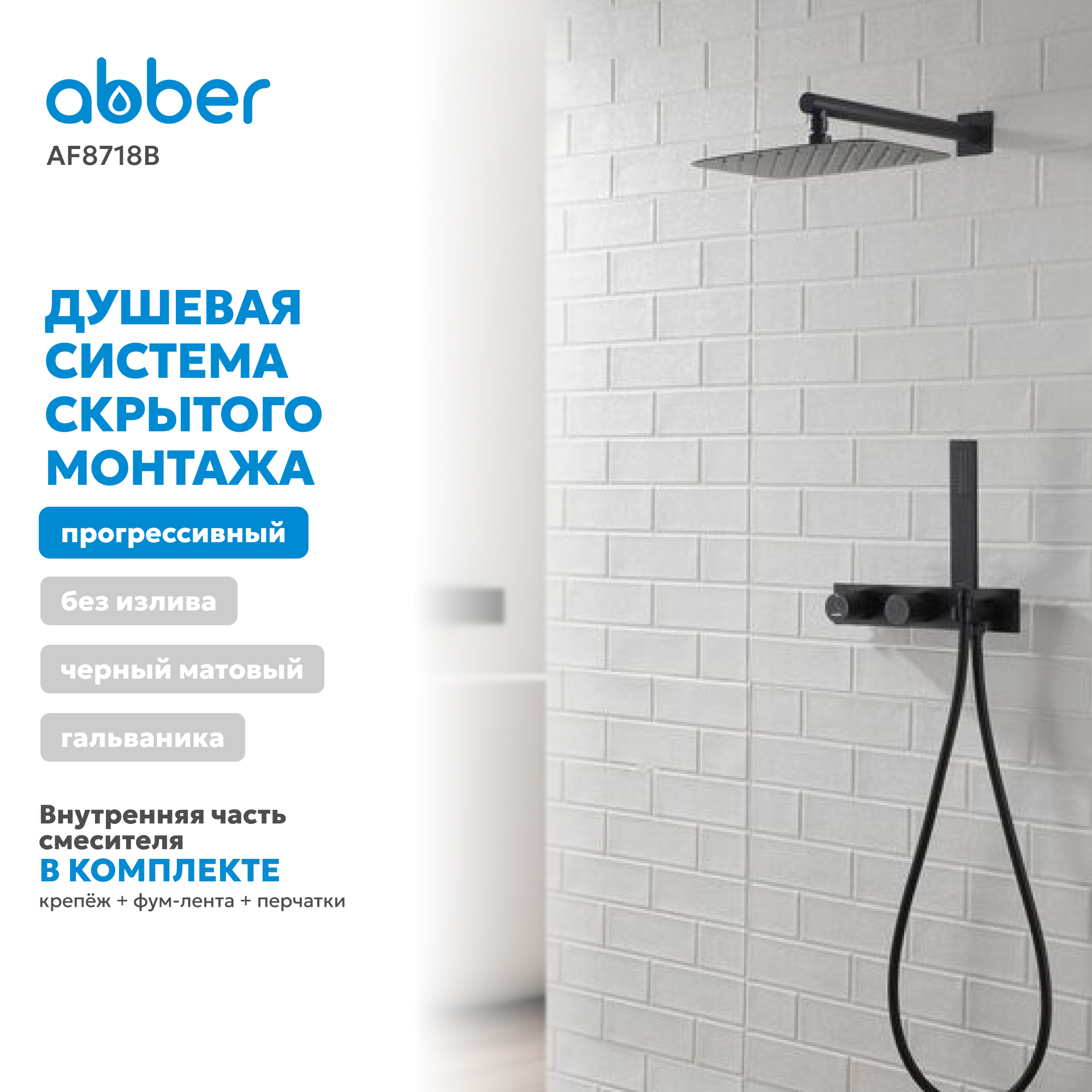 Душевая система ABBER Rund AF8718B скрытого монтажа без излива, черная матовая
