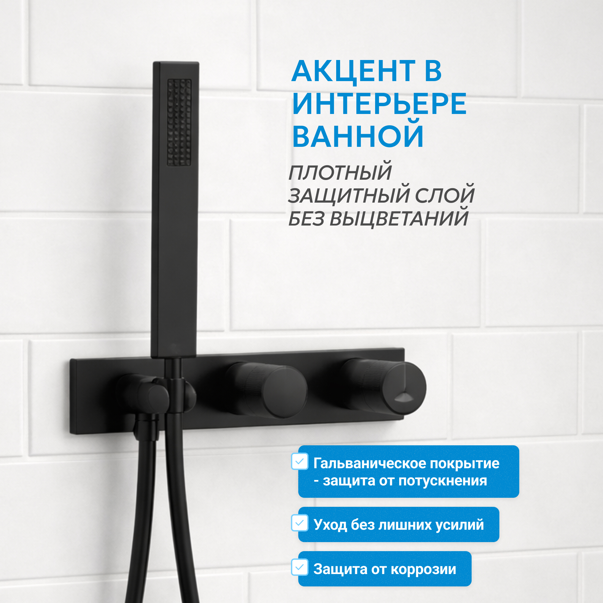 Для нанесения покрытия матовый черный используется метод гальванизации. Это обеспечивает устойчивость к коррозии и хорошо защищает от агрессивных факторов внешней среды, делает материал тверже и устойчивее к износу и истиранию. Черный цвет требует более тщательного ухода.
