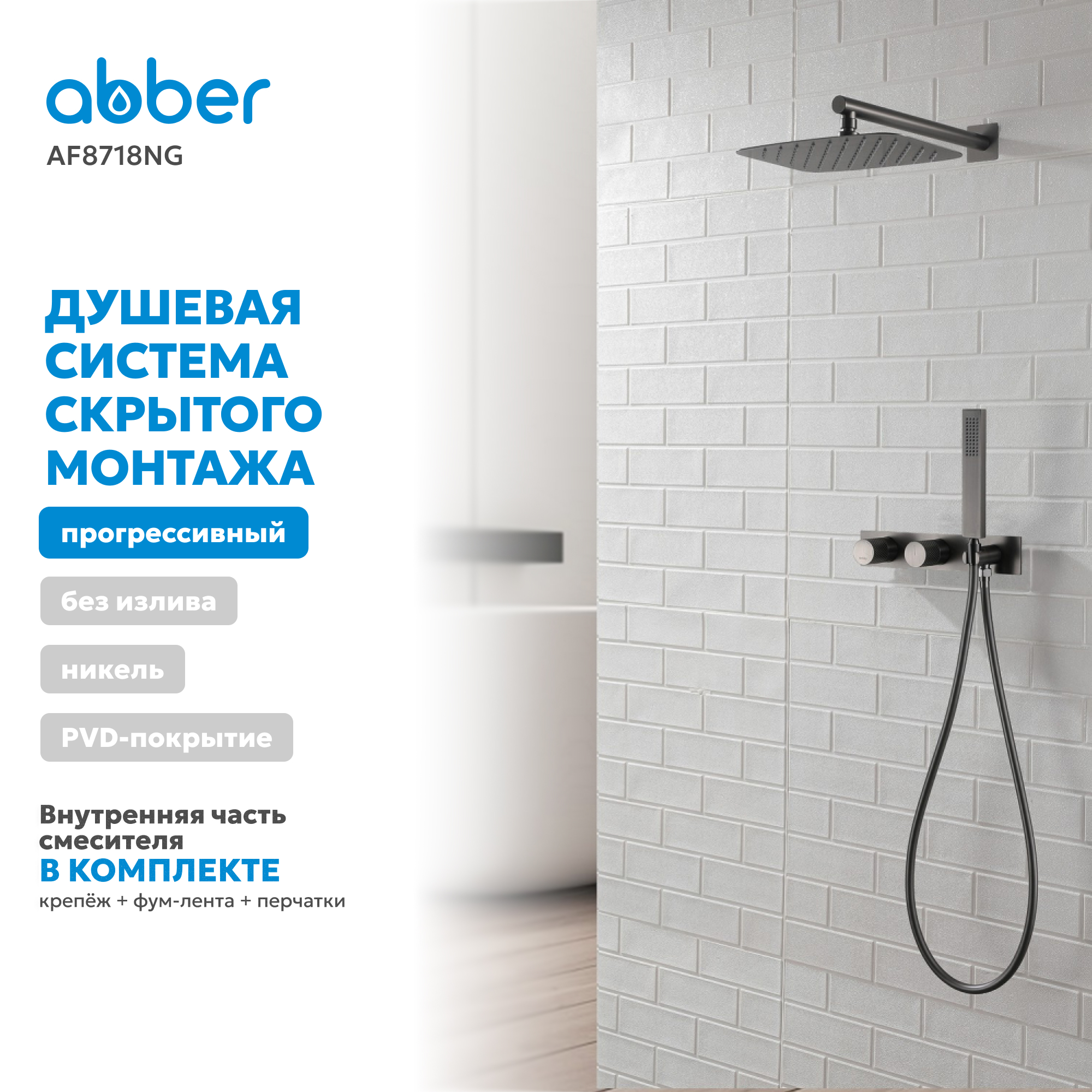 Душевая система ABBER Rund AF8718NG скрытого монтажа без излива, оружейная сталь