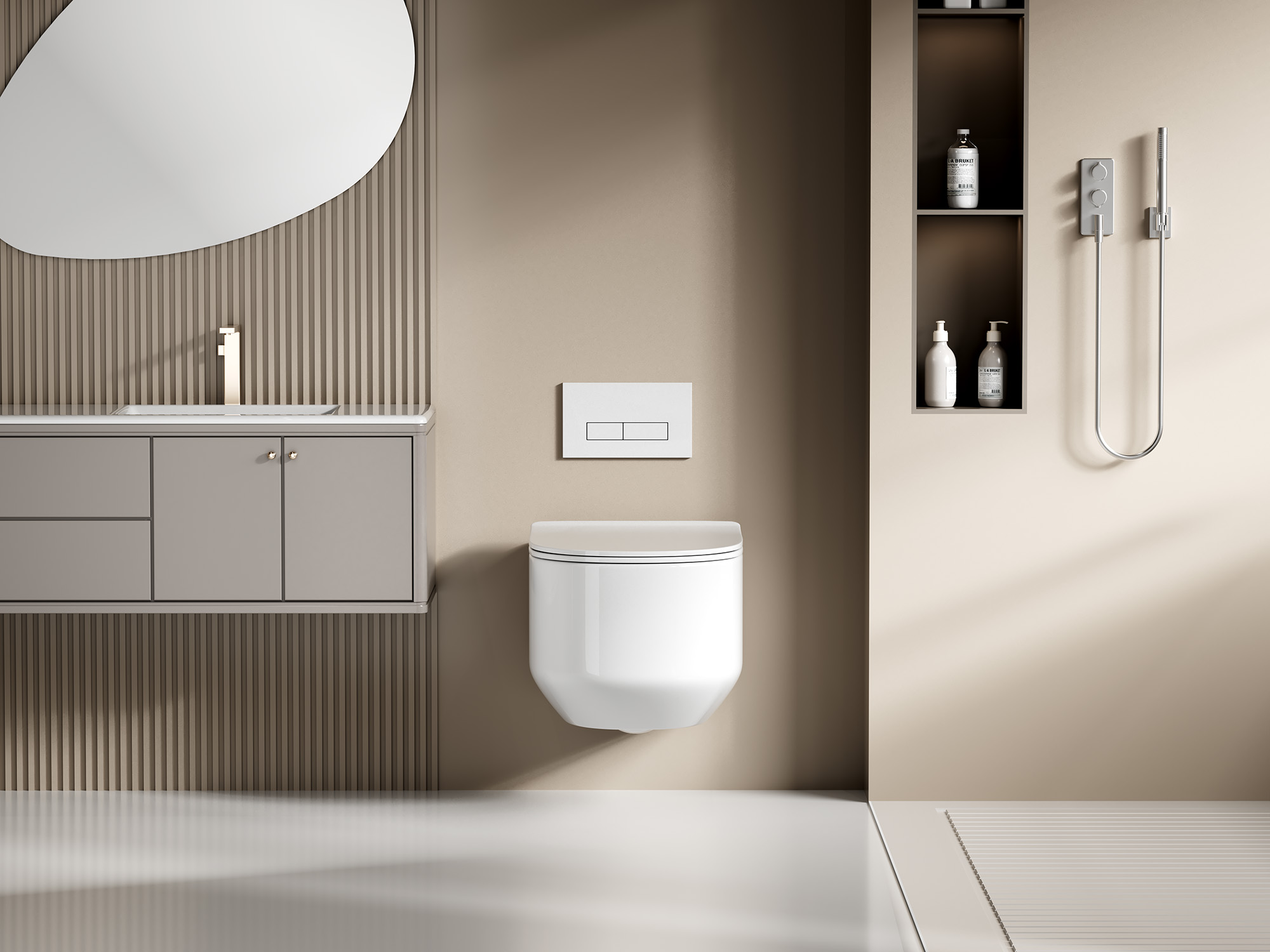 Современные формы и матовая поверхность новых унитазов ABBER со смывом торнадо — это идеальное сочетание удобства, практичности и эстетики. Он станет отличным выбором для тех, кто ценит комфорт и стремится создать стильный интерьер ванной комнаты.