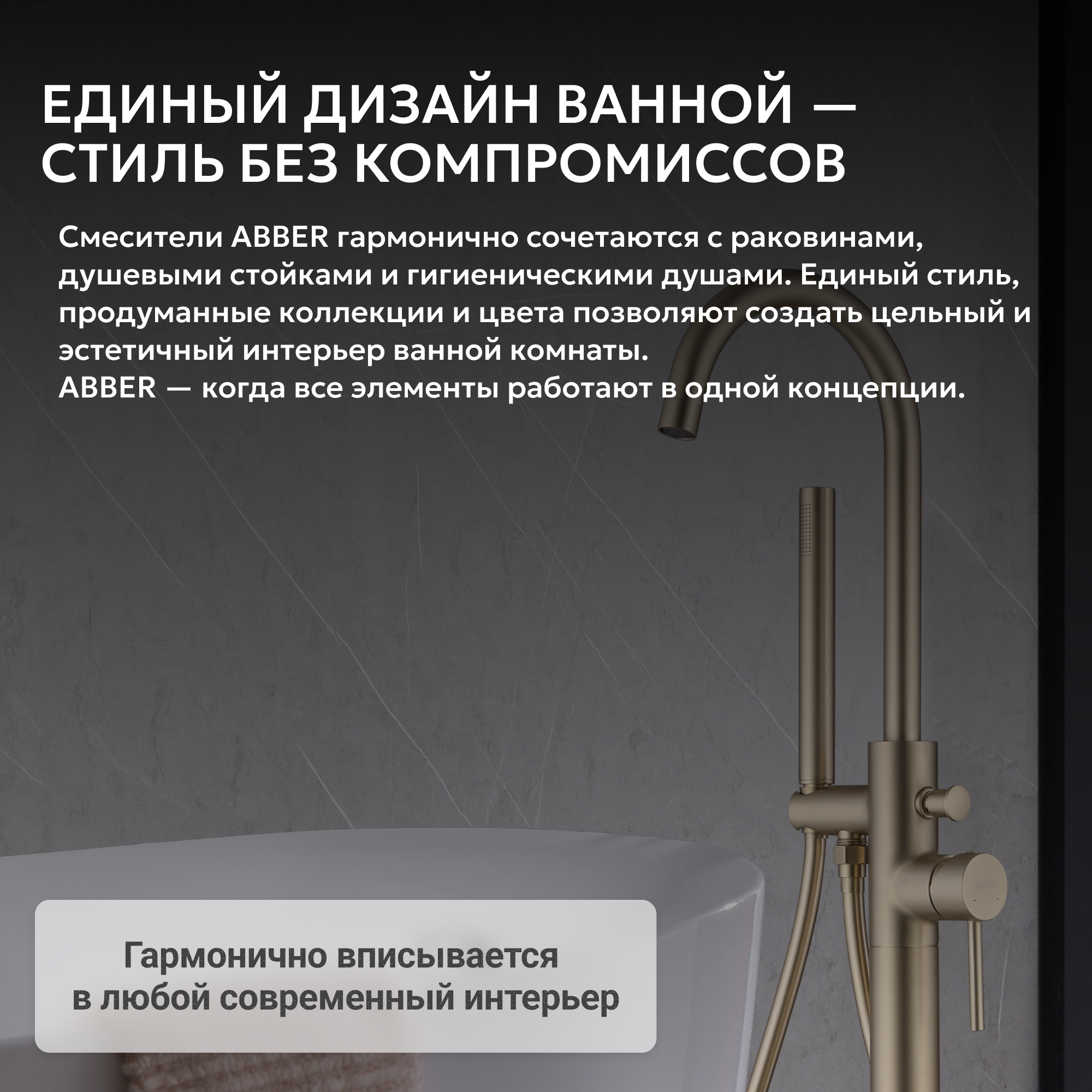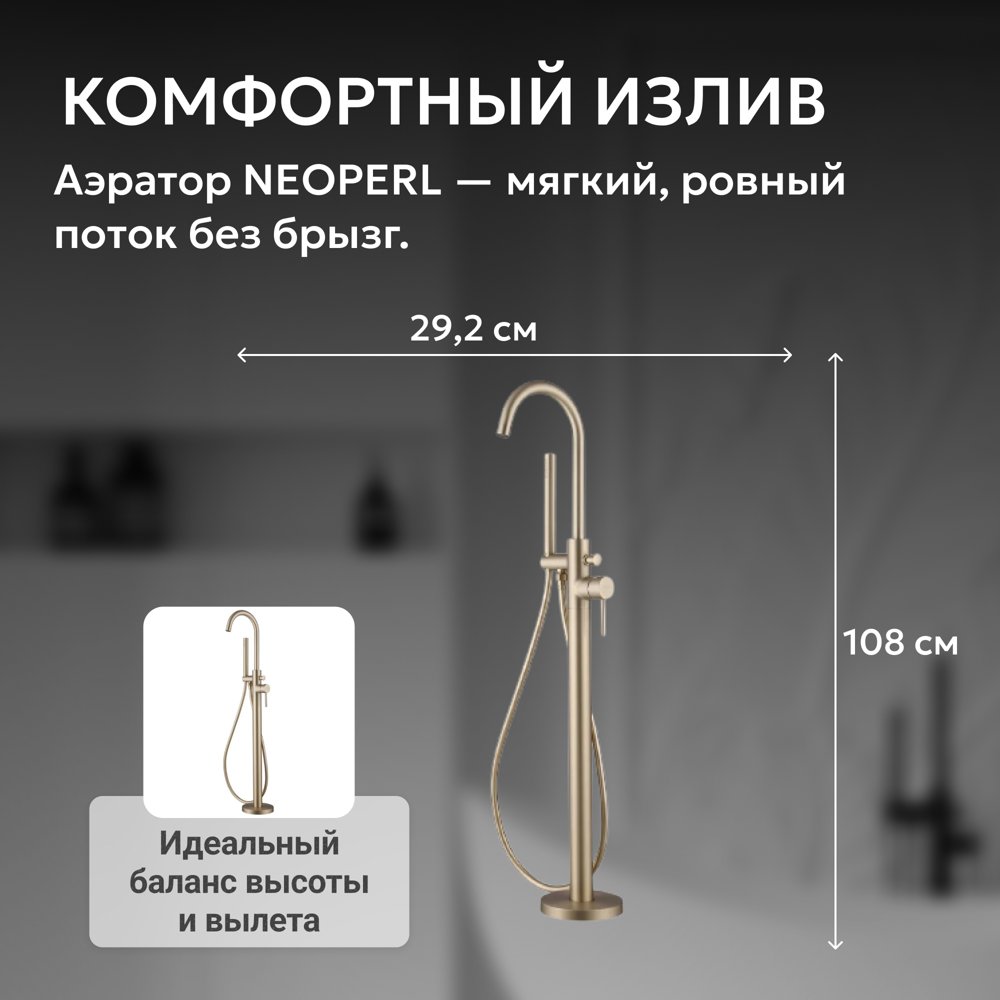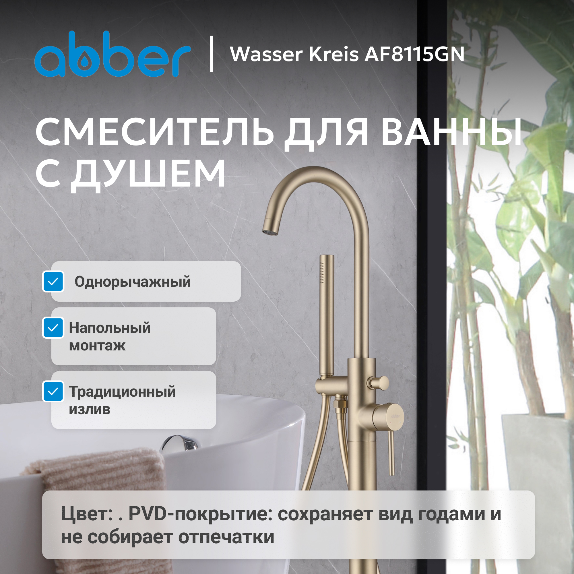Смеситель ABBER Wasser Kreis AF8115GN напольный для ванны, золото матовое