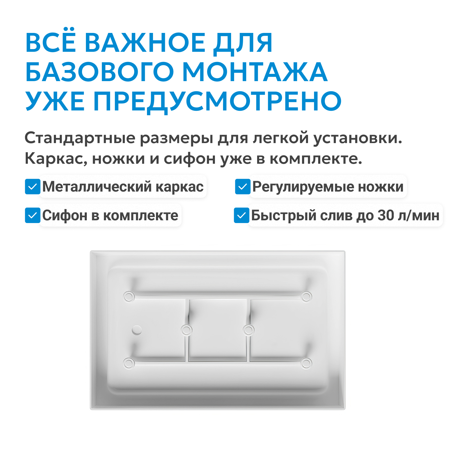 металлический каркас, регулируемые ножки, сифон