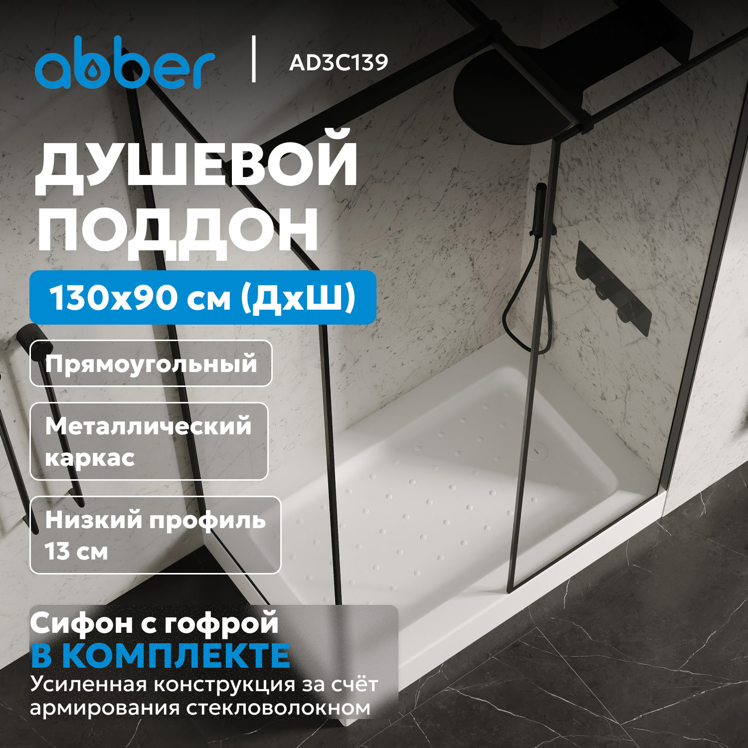 Душевые поддоны / Душевой поддон ABBER AD3C139 130х90 прямоугольный, акриловый, белый