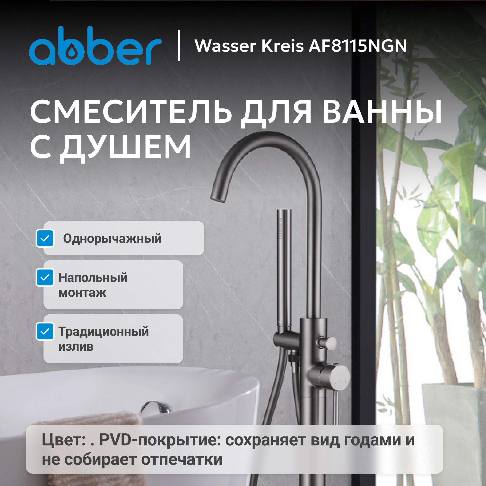 Смеситель ABBER Wasser Kreis AF8115NGN напольный для ванны, никель