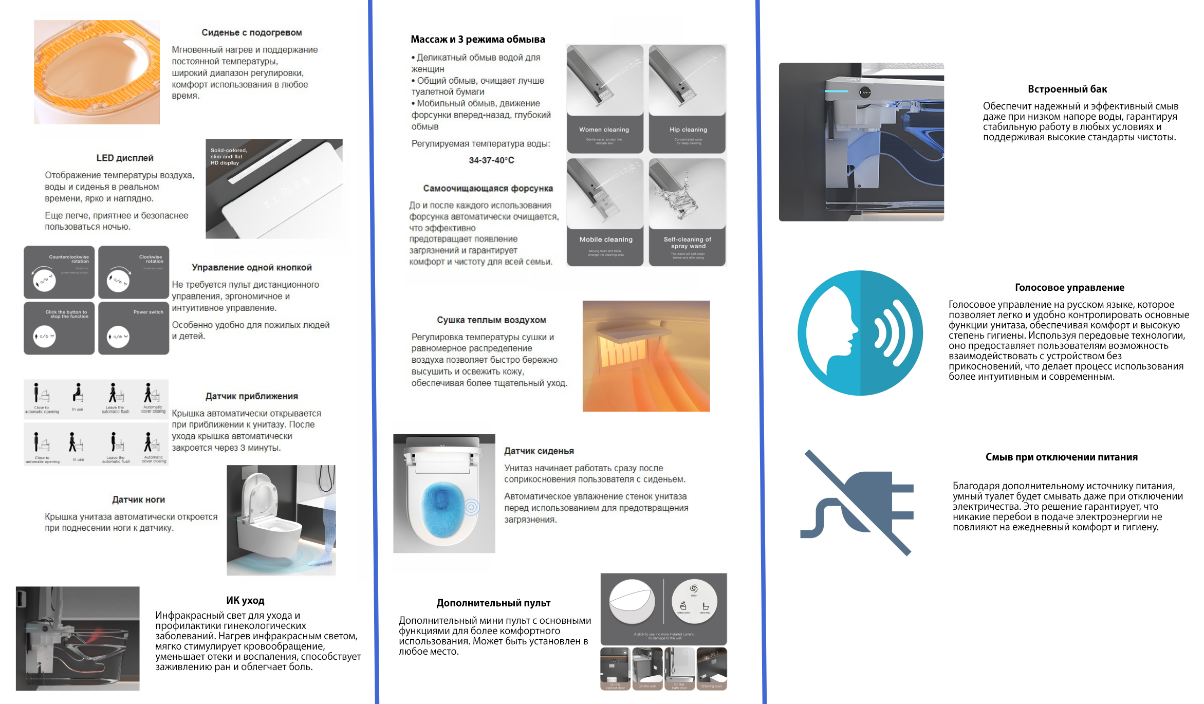 - режимы обмыва: общий, женский, мобильный, массаж