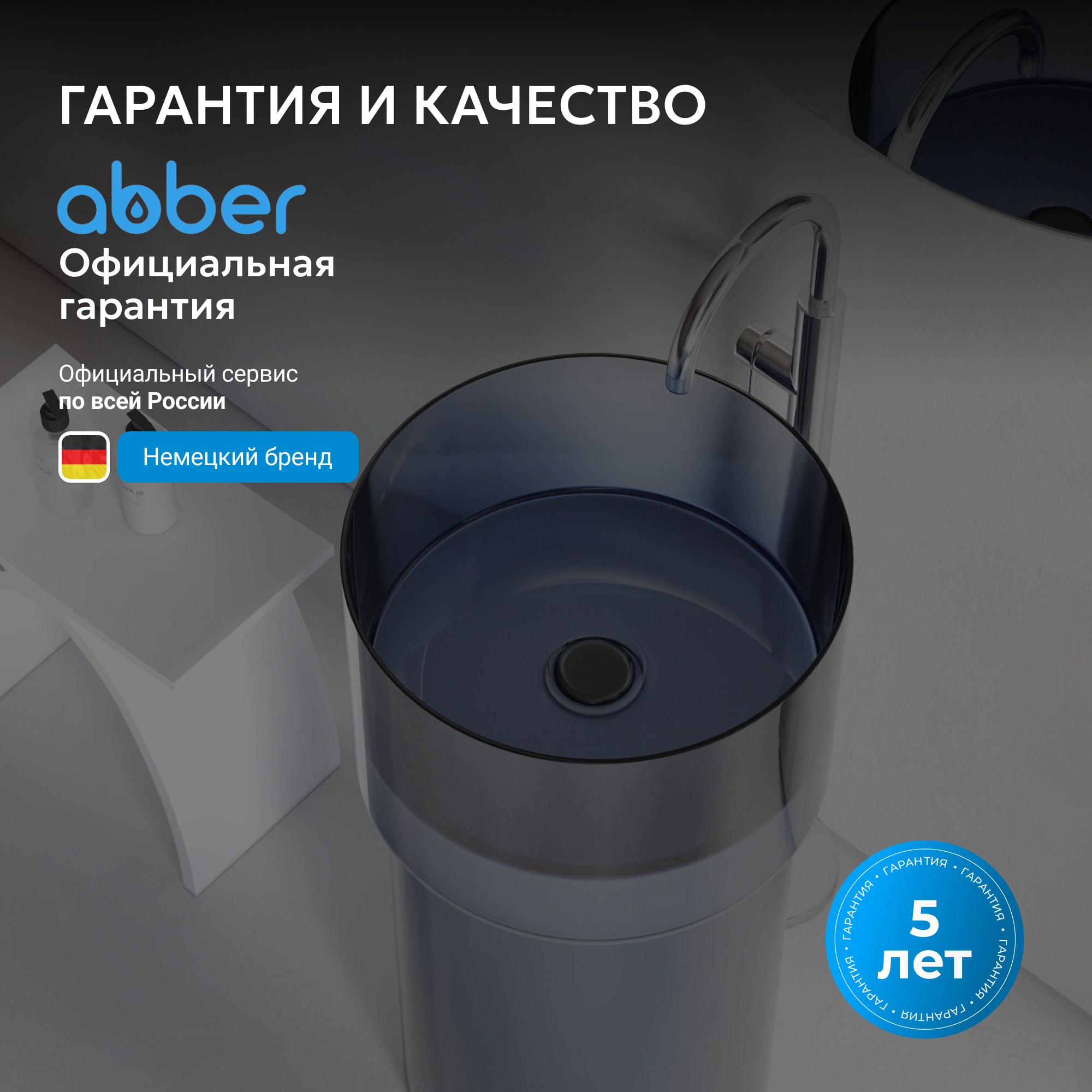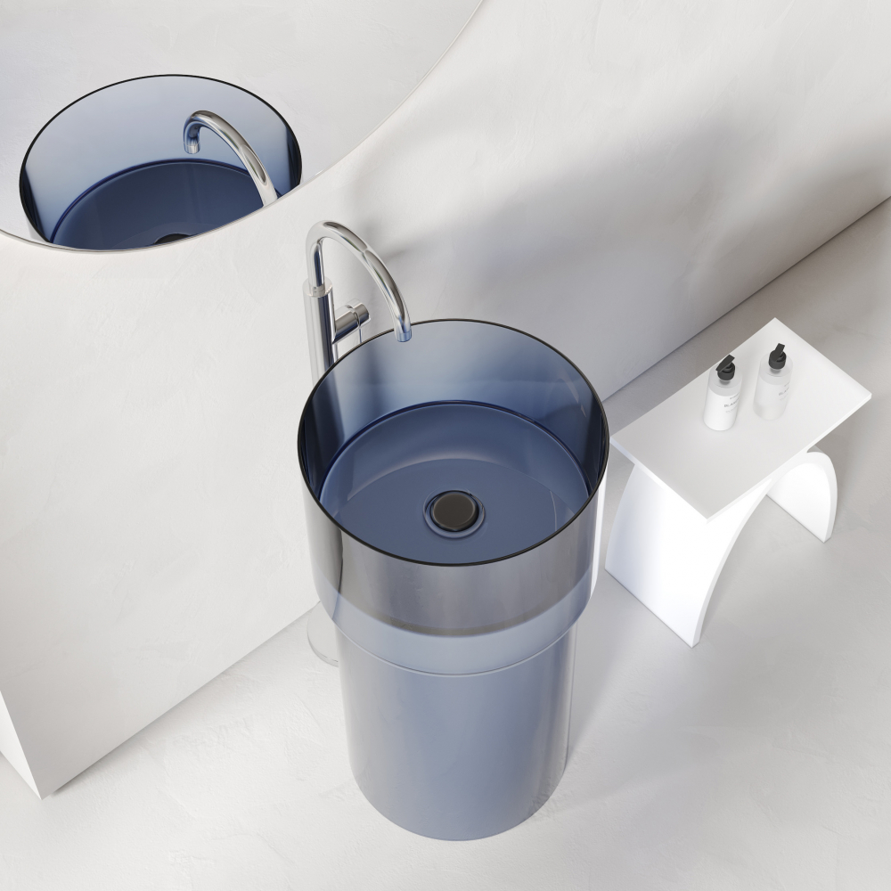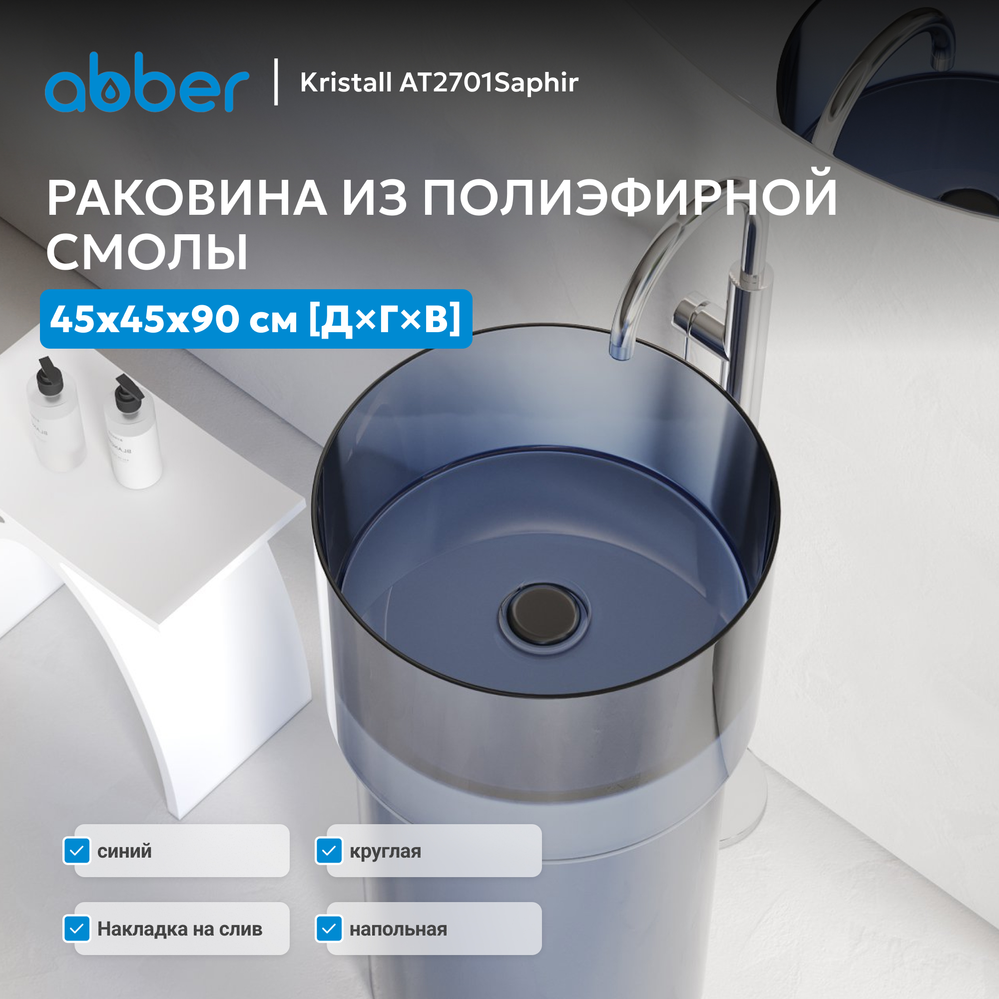 Раковина отдельностоящая прозрачная ABBER Kristall AT2701Saphir синяя