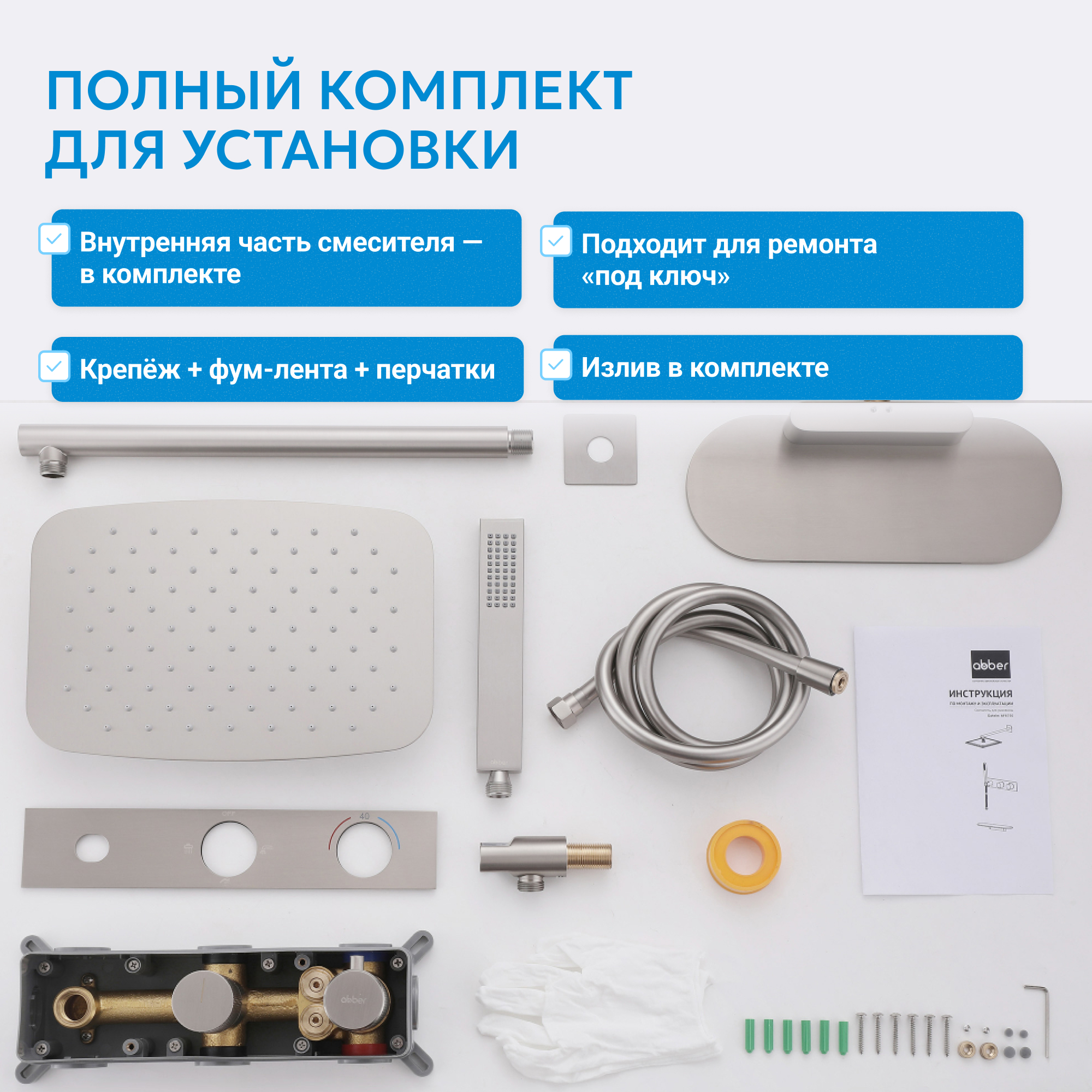 Душевая система ABBER Rund AF8750SP скрытого монтажа с изливом, термостат, сатин