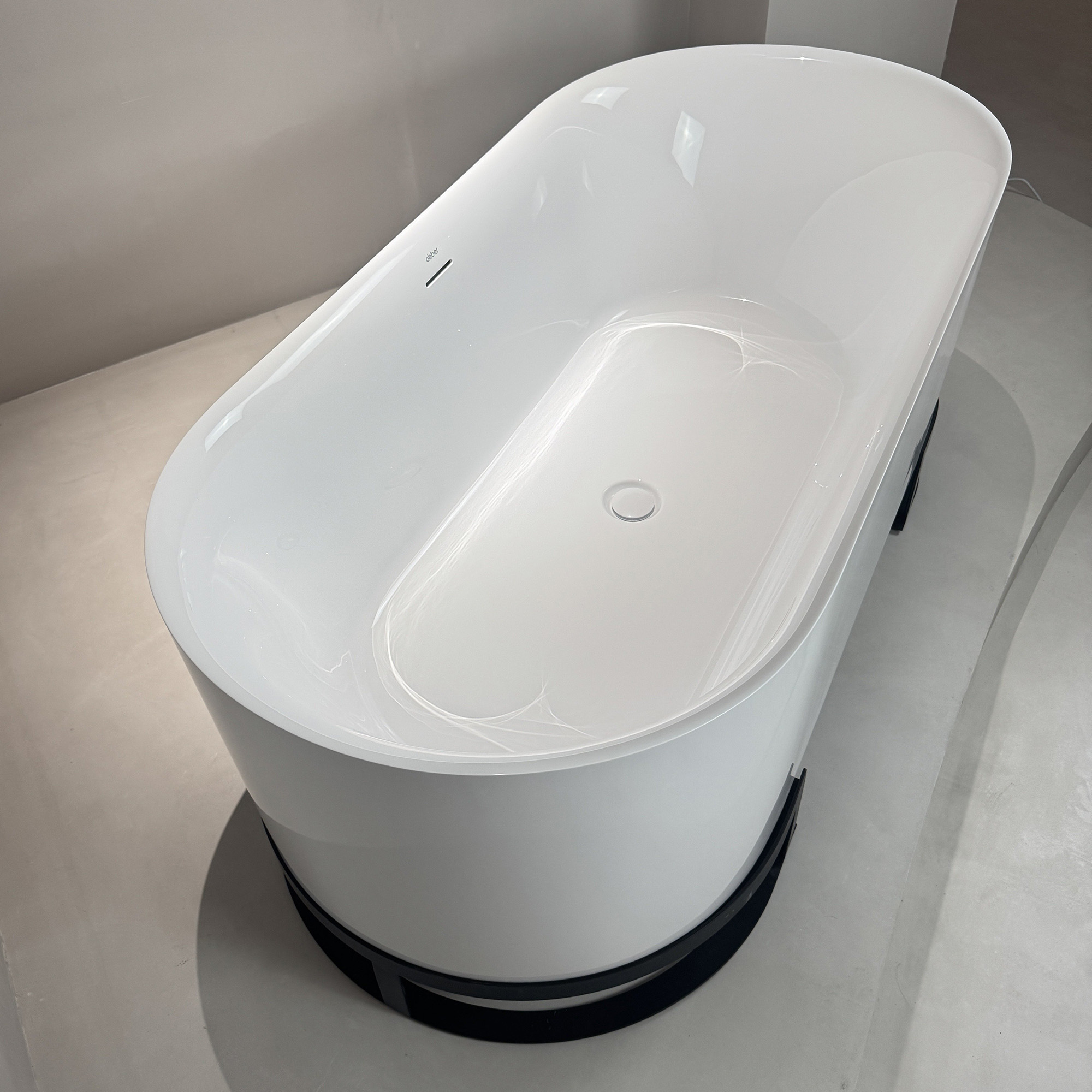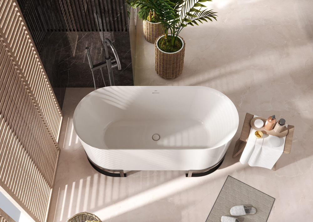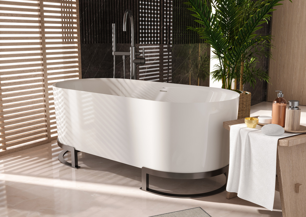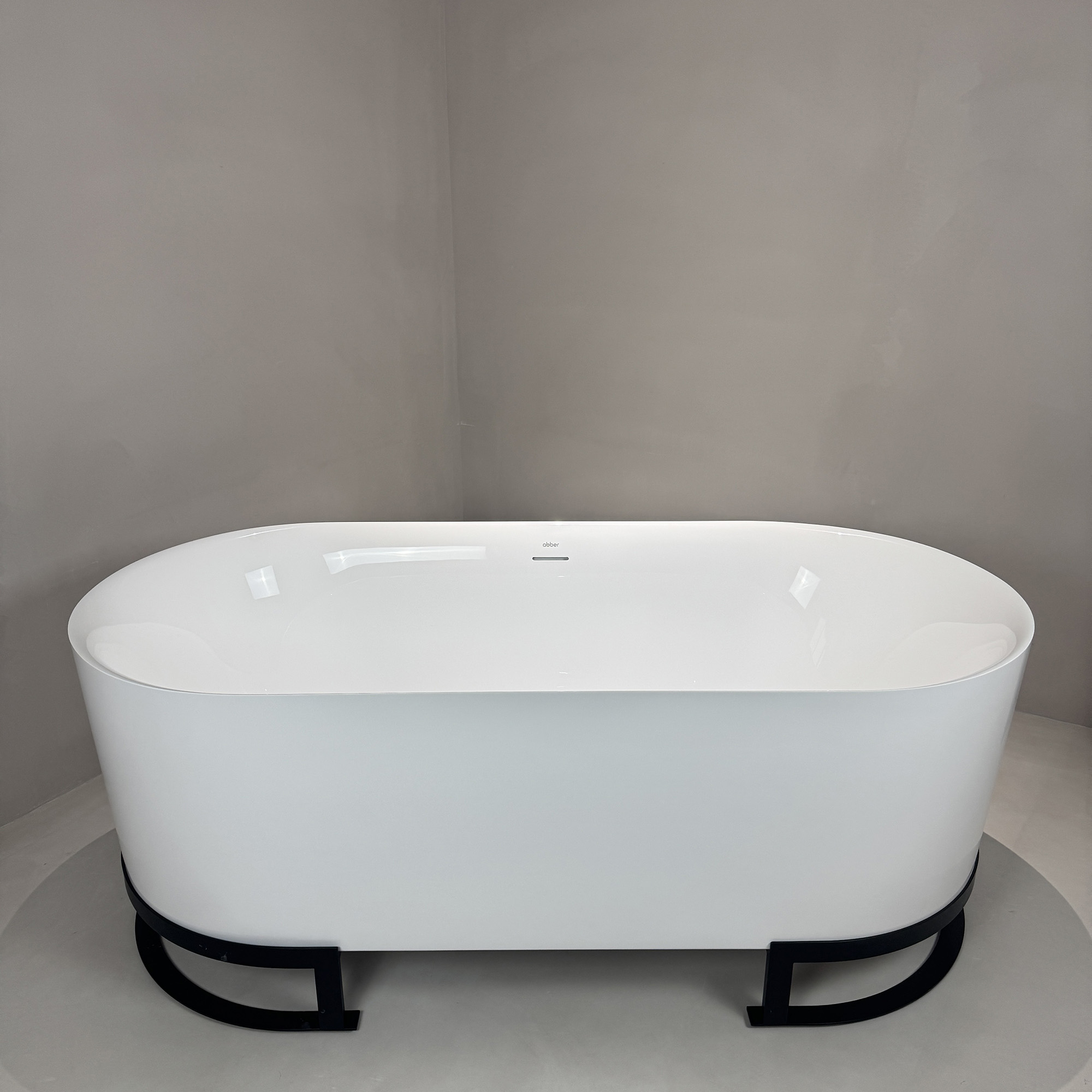 Особого внимания заслуживает конструкция модели. Отдельностоящее исполнение позволяет разместить ванну в центре помещения — так она раскроет свой дизайнерский потенциал в полной мере. Контраст белоснежной чаши и строгих чёрных металлических ножек создаёт эффектный визуальный акцент, а продуманная форма ножек гарантирует надёжность и устойчивость всей конструкции.