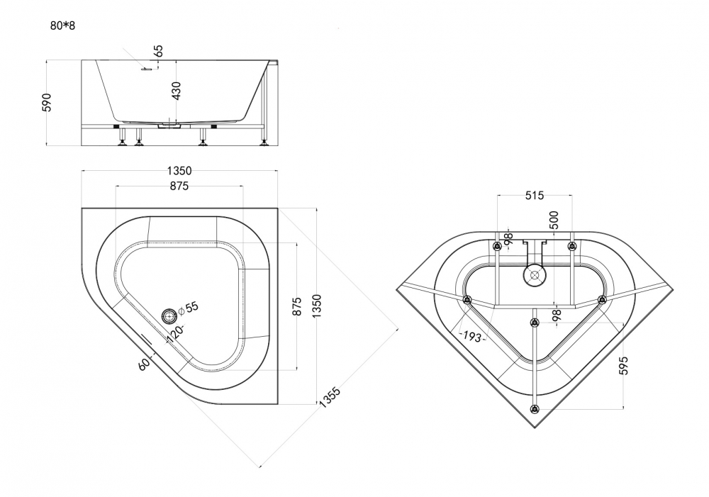 - Оптимальный размер. Габариты 135×135 см обеспечивают достаточно места для комфортного принятия ванны — даже при компактных внешних размерах внутреннее пространство максимально вместительно.