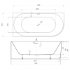 Ванна имеет угловую асимметричную форму, что позволяет эффективно использовать доступное пространство. Размеры изделия составляют 150 см в длину, 75 см в ширину и 58 см в высоту. Объем, равный 256 литрам.