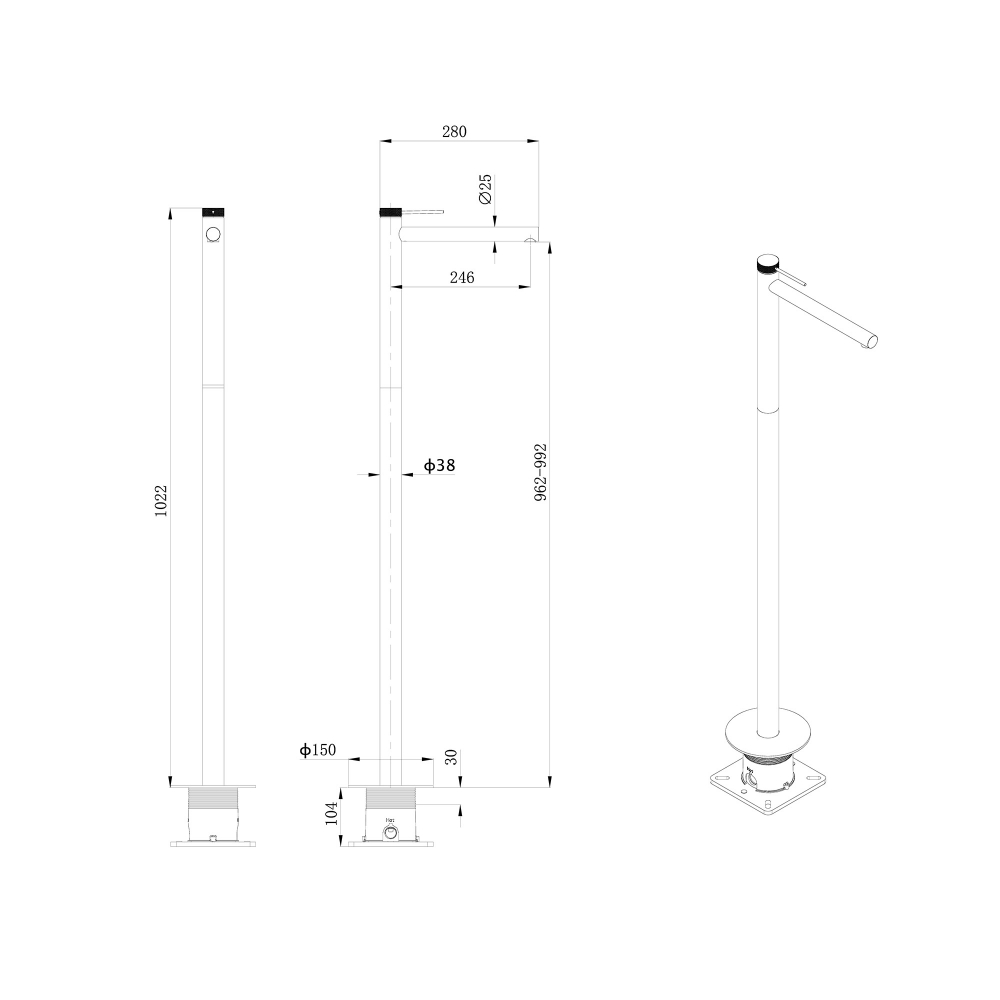 Смеситель ABBER Emotion 316 AF8843BGG напольный для раковины, брашированная оружейная сталь